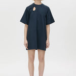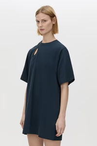 CAMILLA AND MARC Pablo navy mini t-shirt dress with asymmetric cut out at neckline.