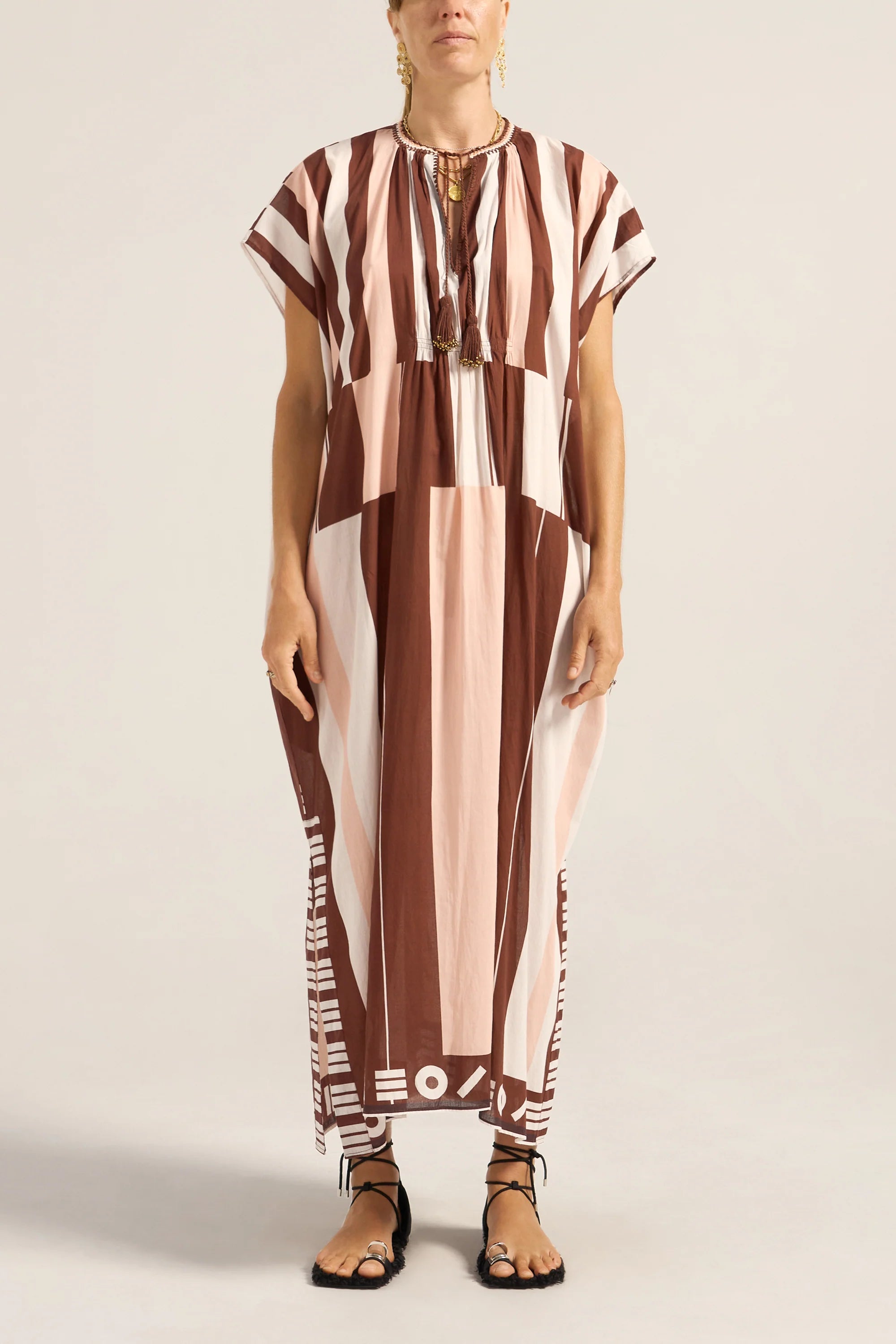 Ilio Nema Thaddeus Caftan in Pink and Brown Sarong Voile