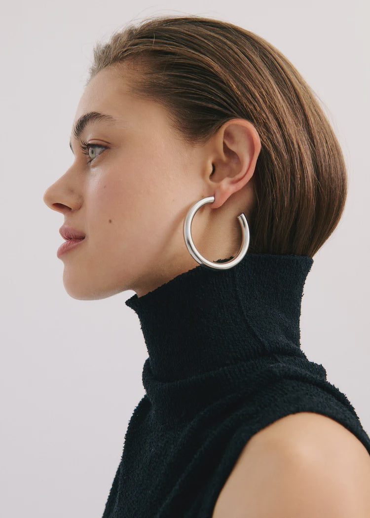 Meet our Big Hoop – your ultimate go-to for a touch of playfulness. These statement hoops, with a stud closure, redefine classic style. Versatile and chic, they effortlessly elevate any outfit. Whether you're brunching or partying under city lights, these hoops are your ticket to stylish fun.