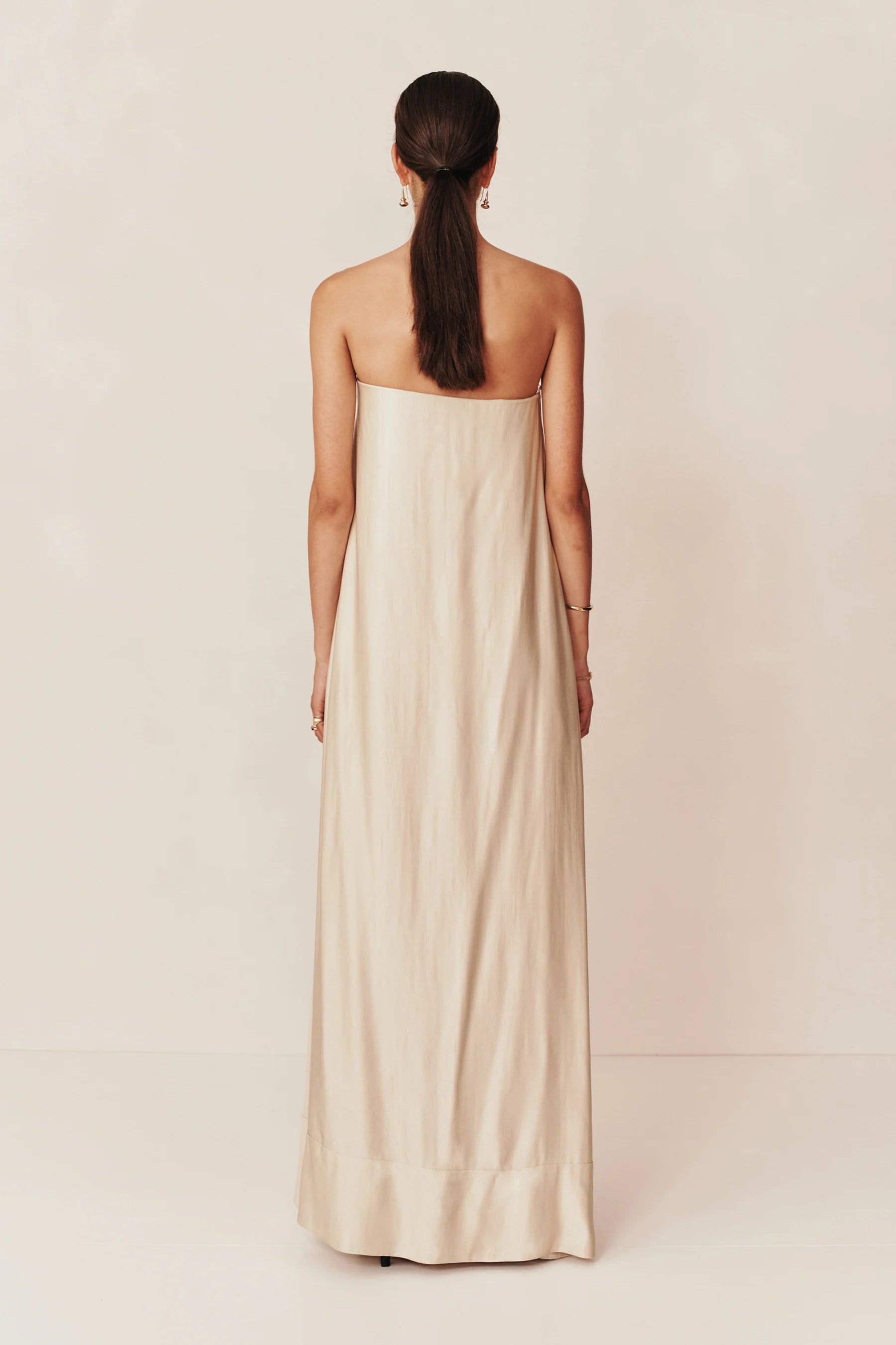 An evolution of the ESSE signature column dress, a voluminous maxi dress with overlapping front feature. Epitomising ESSE’s approach to refined minimalism - a forever investment.