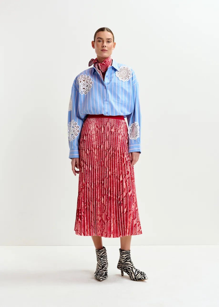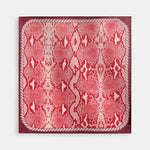 Essentiel Antwerp Inc Scarf in Santa Claus. Snake print scarf is crafted from 100% lightweight silk. Measuring 55 x 55 cm with a refined rolled hem, this scarf drapes beautifully around the neck, wrist, or handbag. The carefully placed print and silky-soft texture make it an elegant and versatile accessory for any season.