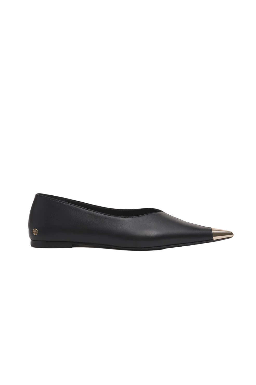 Anine Bing Nina Flats with Metal Toe Cap in Black