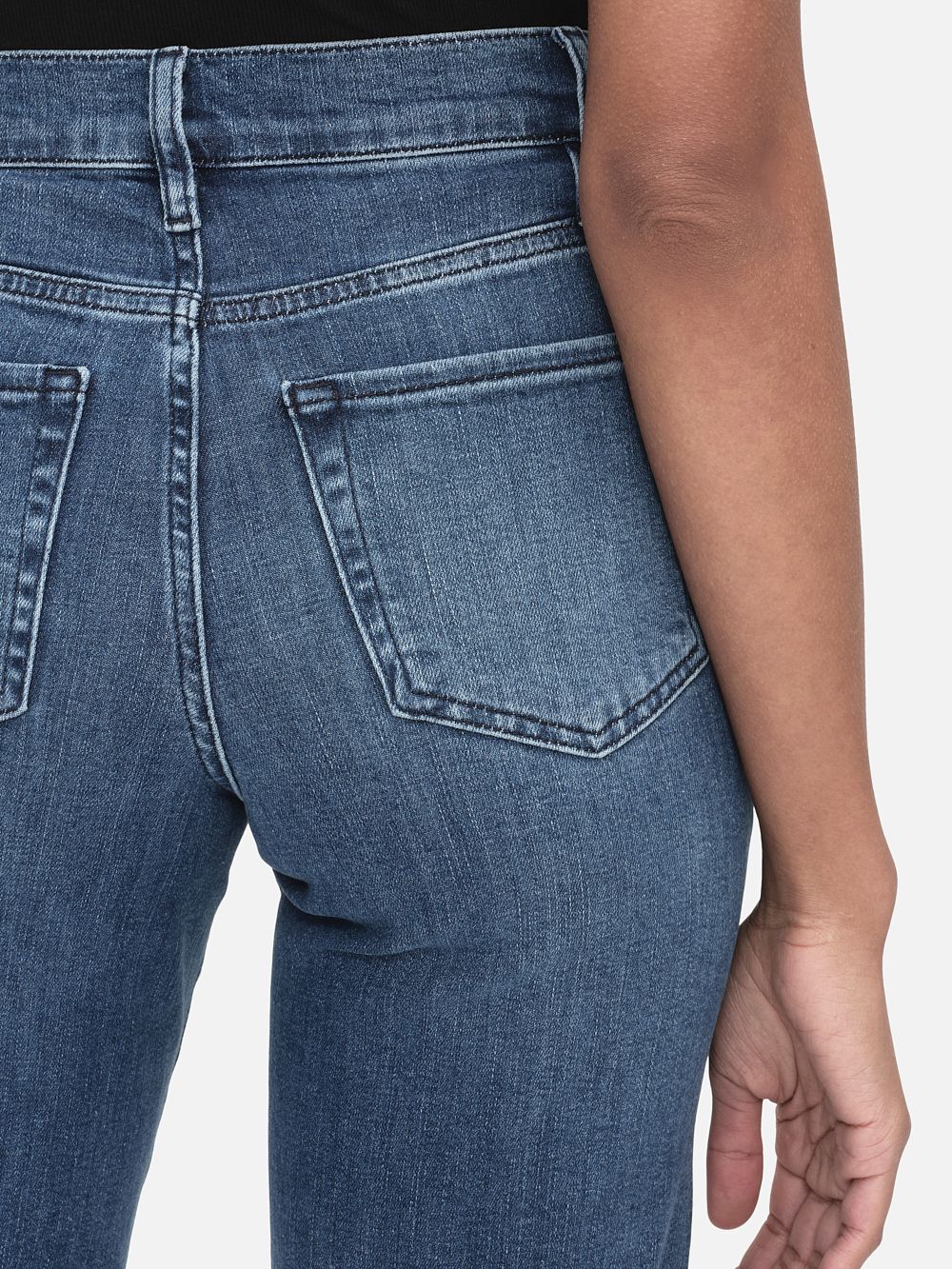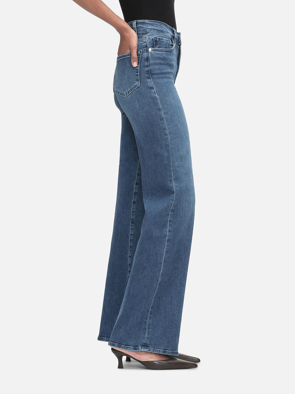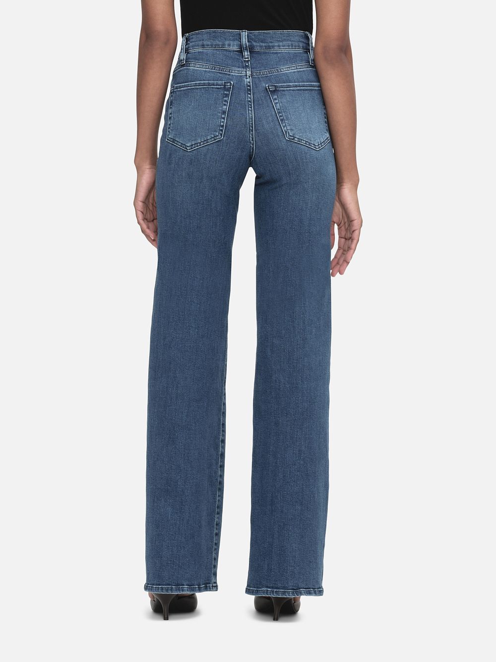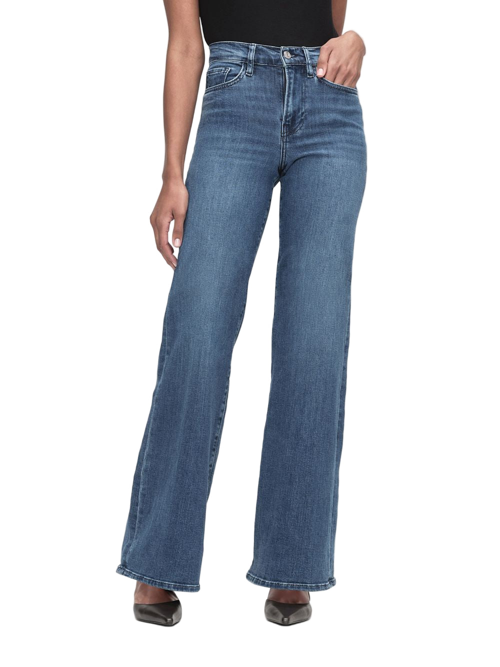 A FRAME introduction to the best-selling palazzo silhouette, this pair is designed with a flattering high rise, fitted hip, and subtle wide-leg flare that hits at the floor. The dark indigo wash invites infinite styling options. Crafted from a comfort stretch cotton blend for soft and comfortable wear.