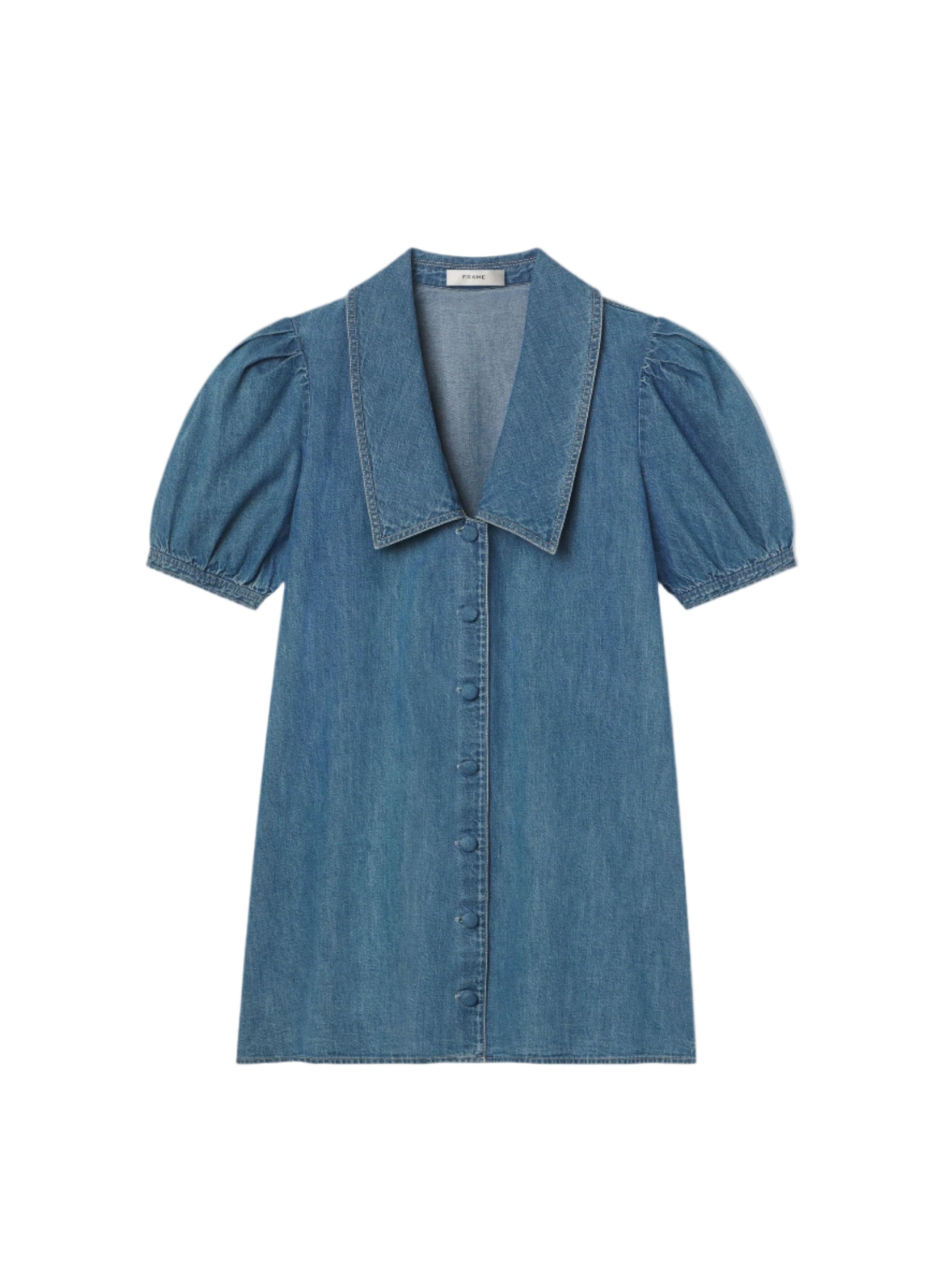 Frame The Sailor Dress in Starlet. We updated our bestselling Sailor Blouse into a coveted mini dress. The oversized collar, flattering V-neckline and pleated sleeves all nod to nautical style in a subtle way.