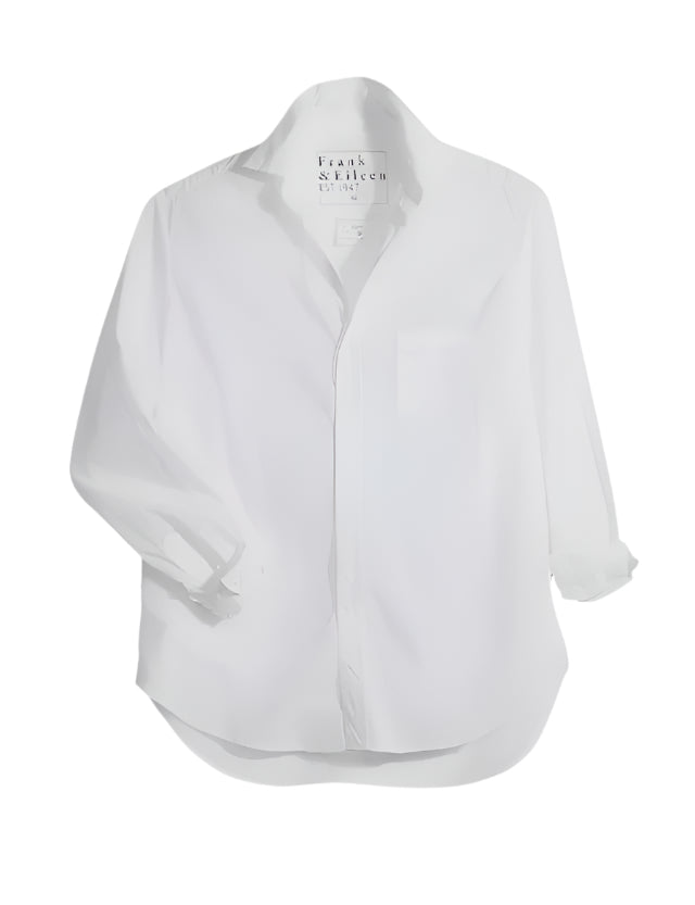Frank and Eileen Eileen Relaxed Shirt in White. Frank & Eileen's relaxed linen button-down shirt in white features a generous cut and bust-flattering button placement, making it perfect for any occasion.