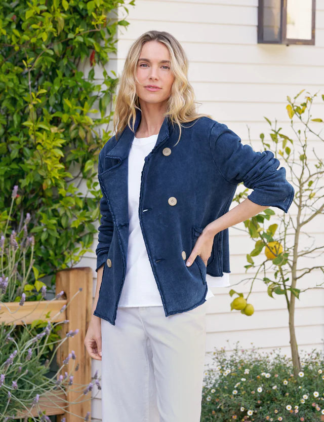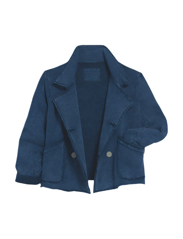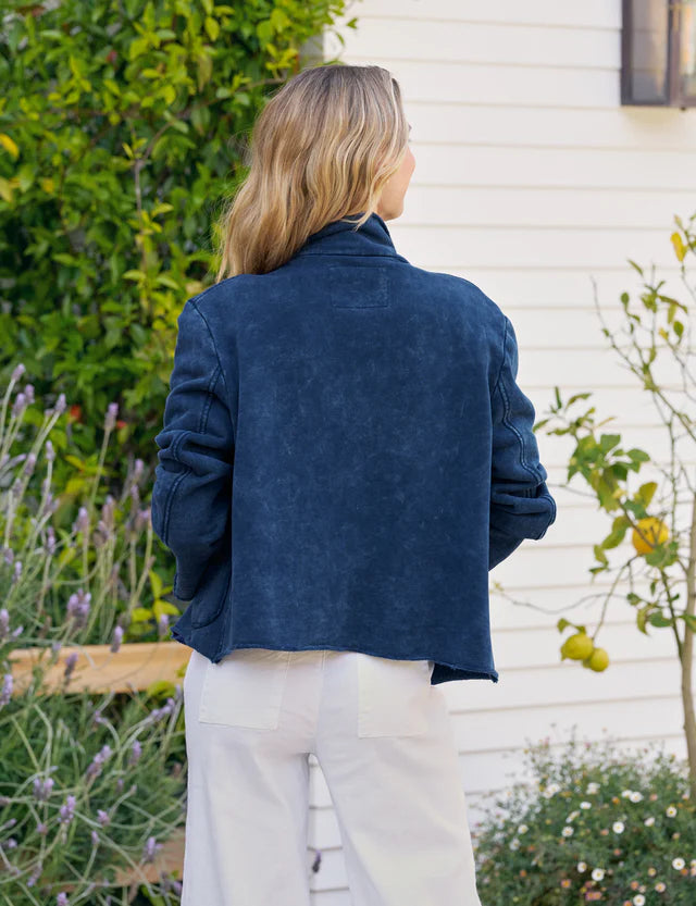 Frank and Eileen Mini Belfast Cropped Peacoat in Indigo Mineral. Our Belfast Sweatshirt Peacoat was love at first sight! This mini, everyday version has all the best parts of the original—luxurious horn buttons, scrunchable sleeves, and a statement collar — with the cutest cropped fit!