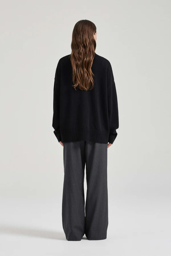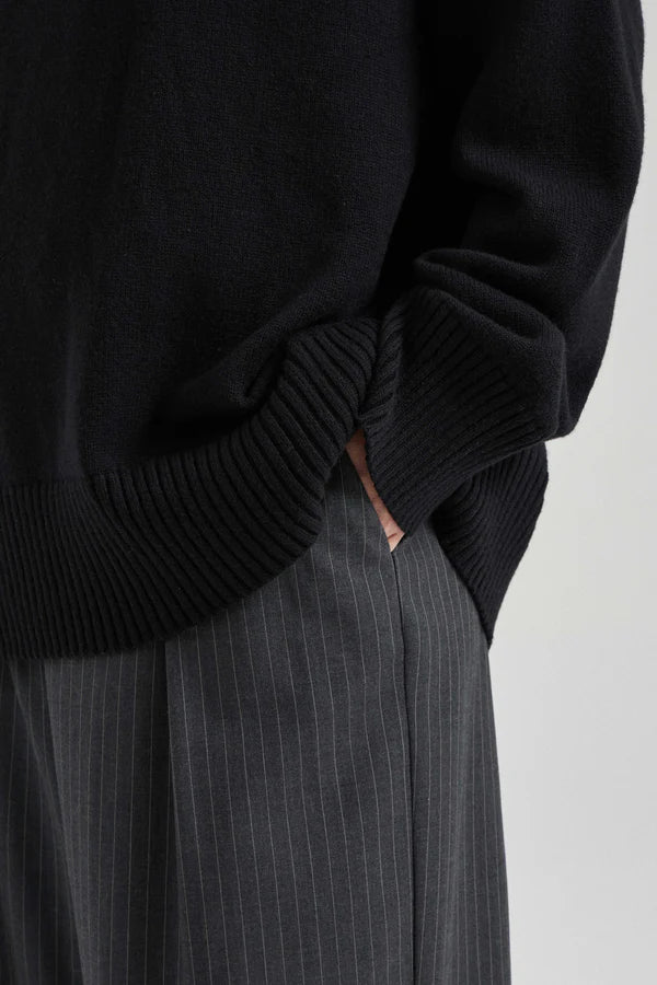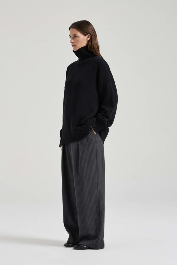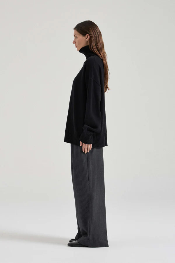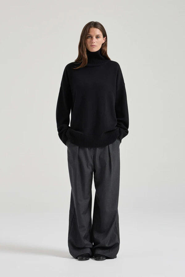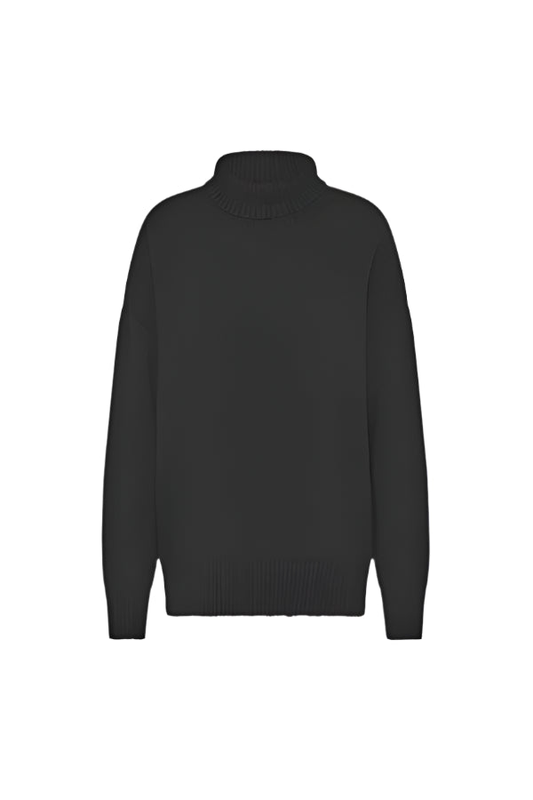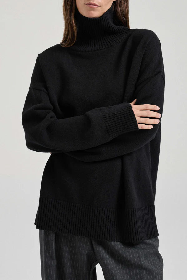 Friends With Frank Mara Knit in Black. Knitted from a luxuriously soft blend of cotton and merino wool, a turtleneck is an enduringly chic silhouette. The Mara Knit features our signature relaxed fit, with a drop shoulder and generous volume for ultimate comfort.