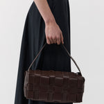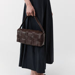 St Agni Woven Envelope Mini Tote in Chocolate. Early release of this silhouette in advance of SS26, this is a limited addition and launching a season prior, feeling very exclusive in the market.