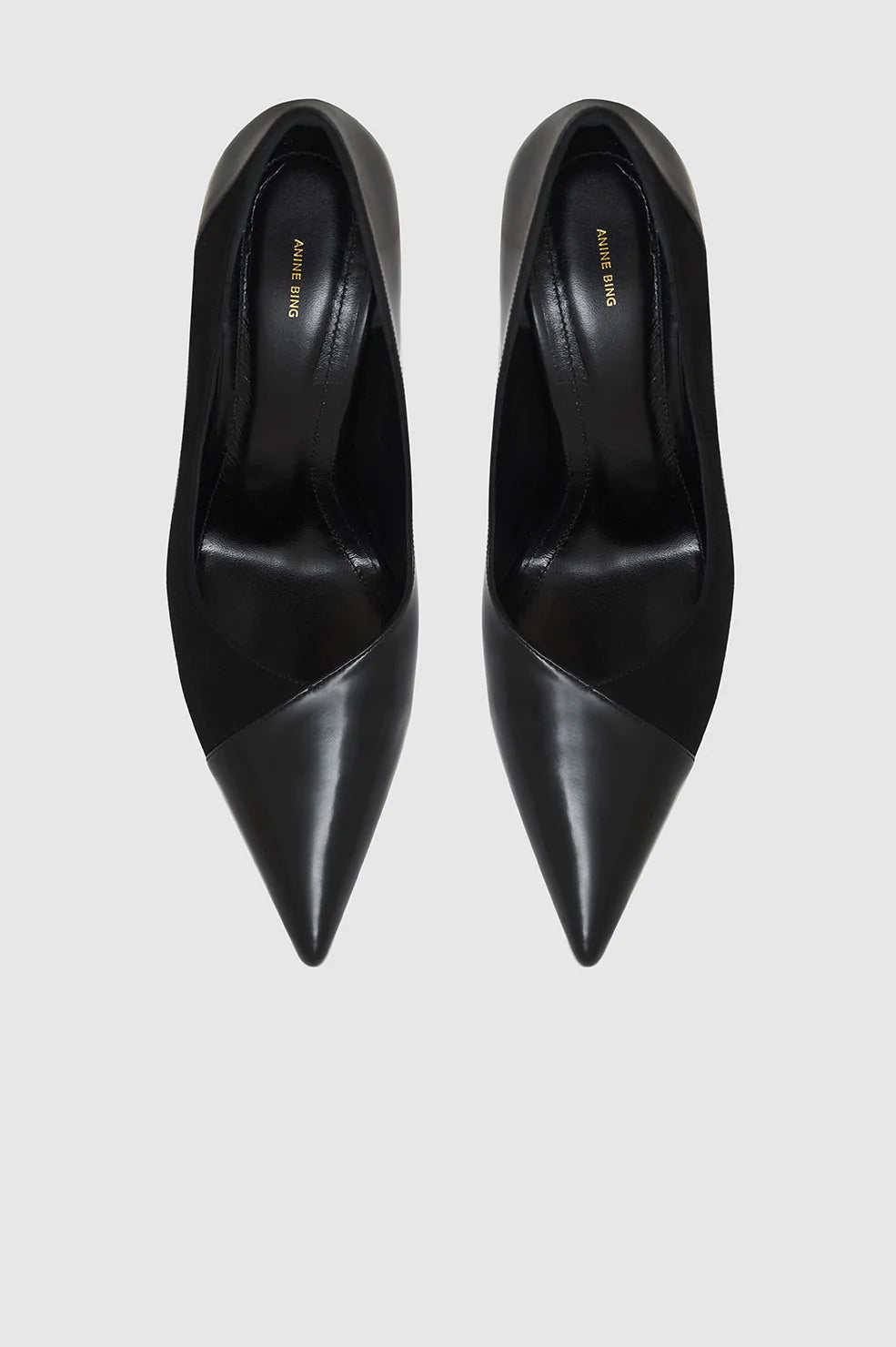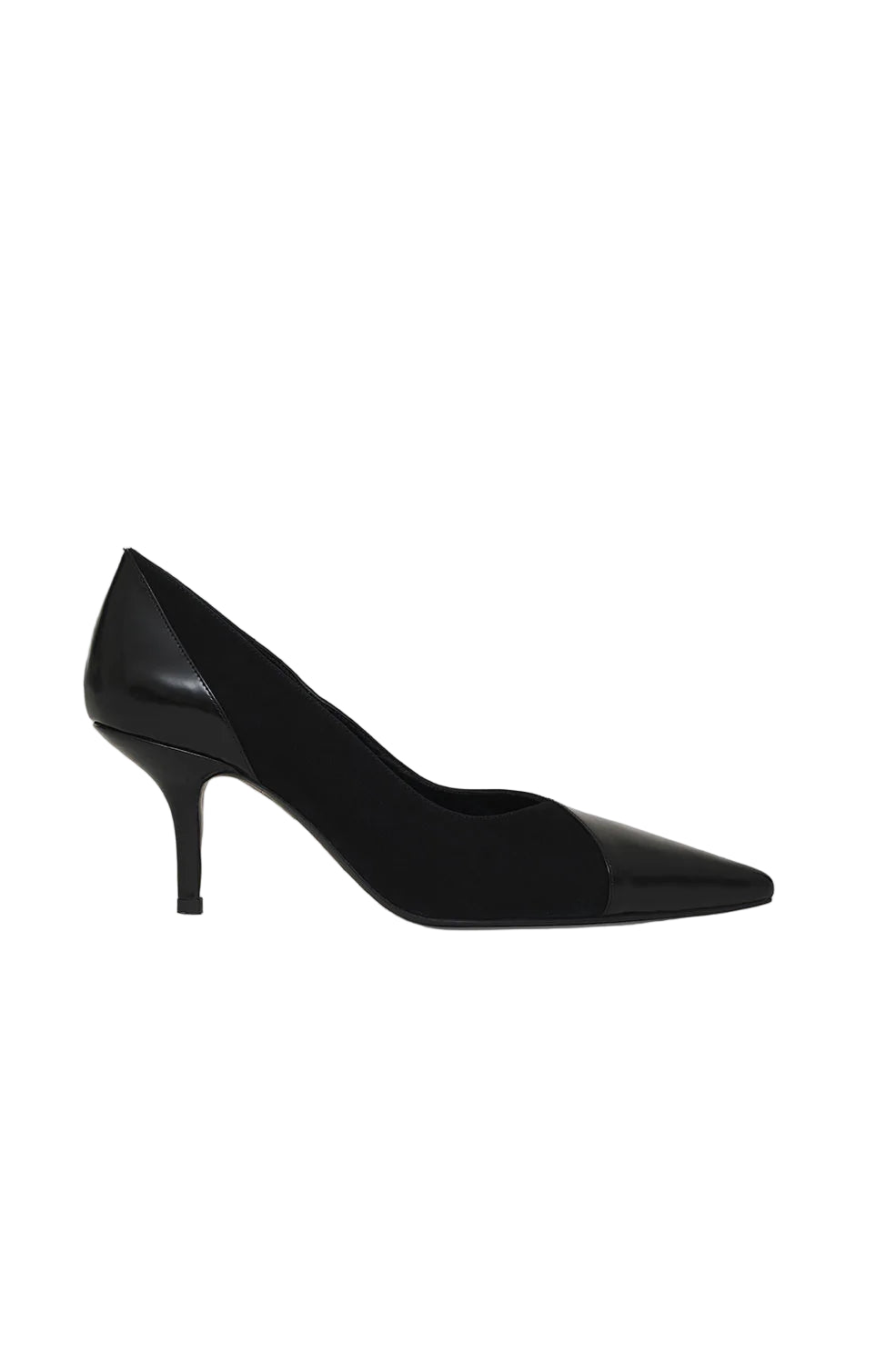 The Devon Pumps are made from 100% leather in a contrasting high-shine and matte black finish. An elevated heel and pointed toe elongate the leg, while a cushioned insole ensures a comfortable fit.