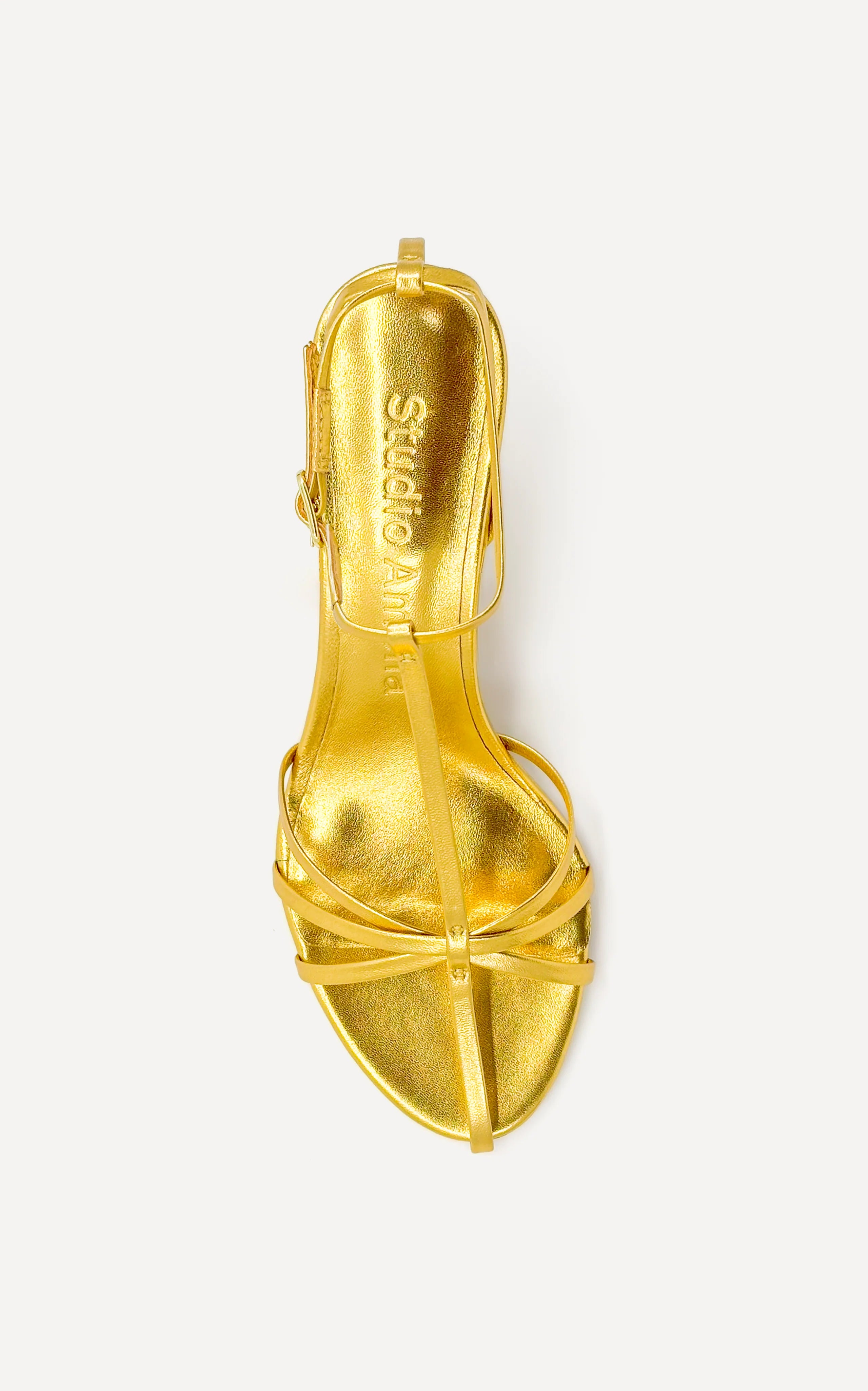 Studio Amelia Aviary 70 Heel in Gold. The Aviary 70 Heel is the latest addition to our Signature Collection.