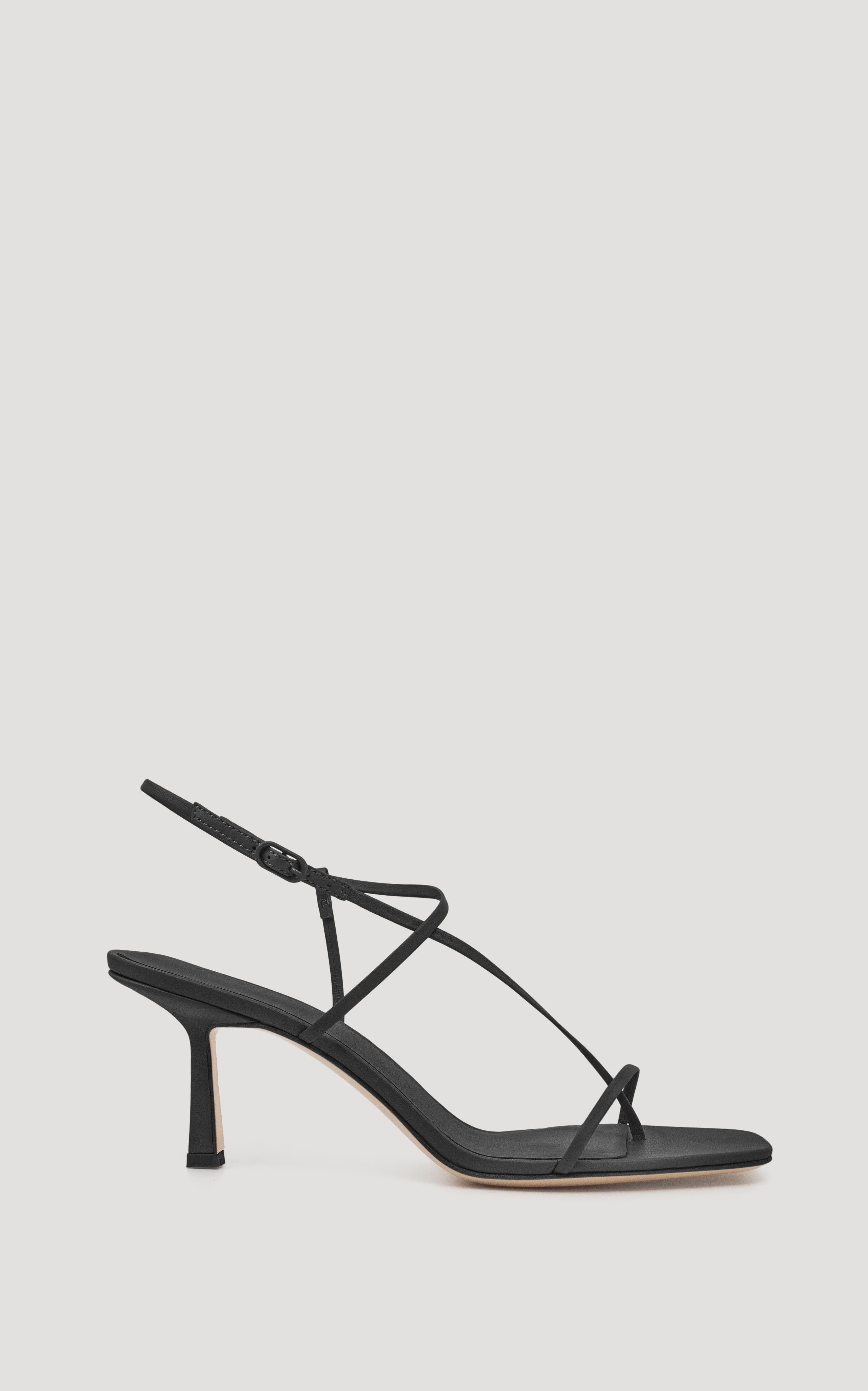 A re-imagined version of a best selling style, the Cross Front 70 Heel sandal features a contemporary sharp-square toe, thong style sling-back design, seamless 5mm straps and our Classic 70mm slim heel.