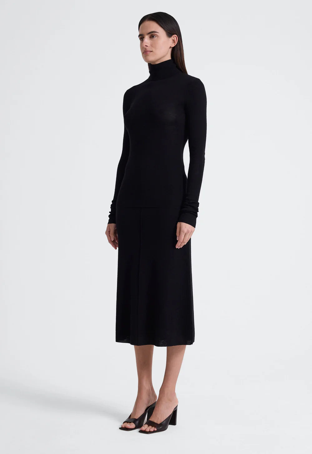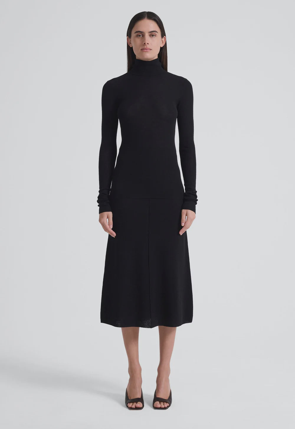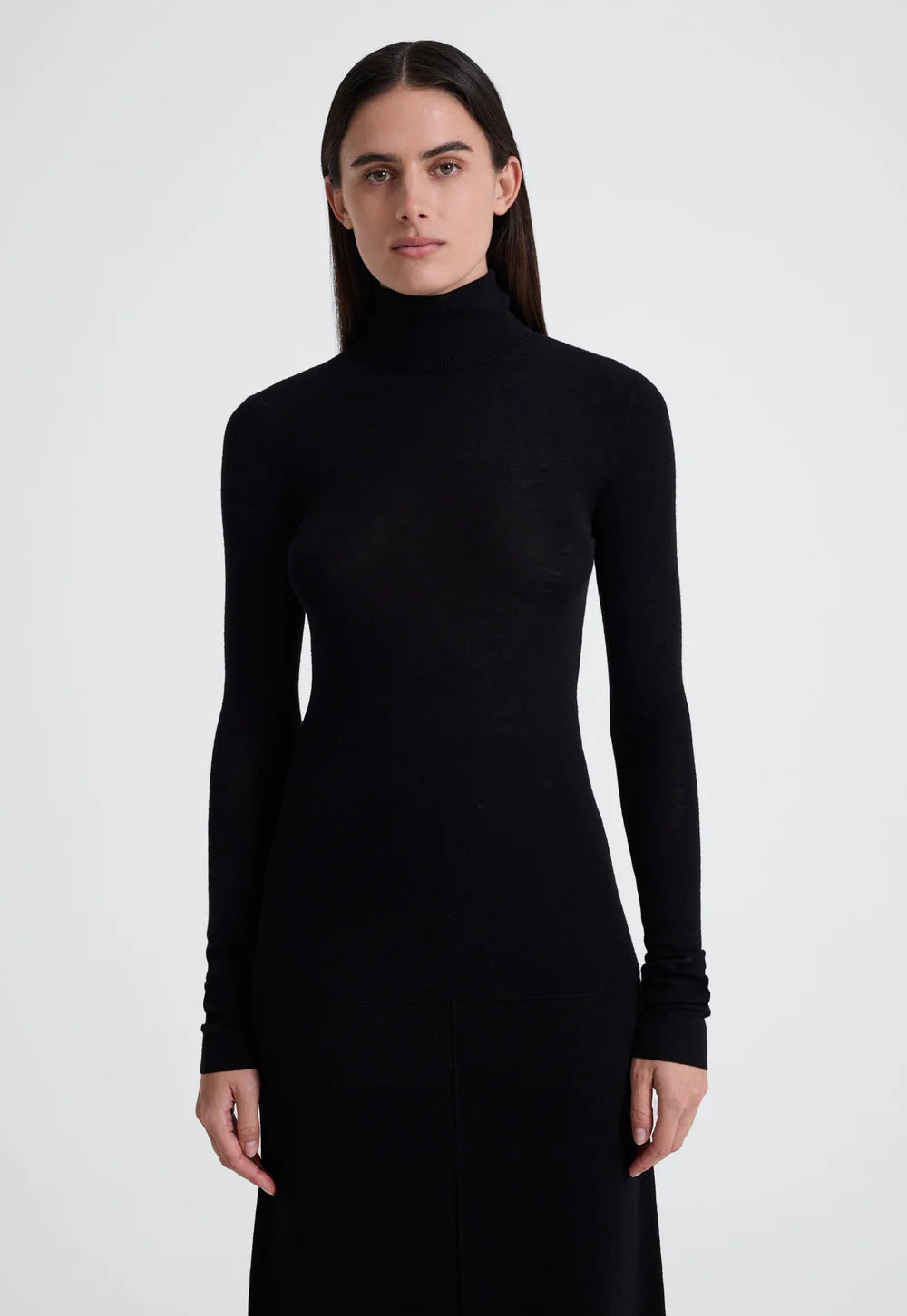 Jac and Jack Cube Sweater in Black. Elevate any look with this classic turtle neck sweater. Crafted from a fine merino wool, this piece is as luxurious as it is effortless. Featuring a slim fit shape, fitted roll neck and full length sleeves this sweater is timeless with a modern sensibility.