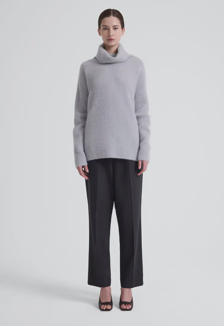 Jac and Jack Hayward Sweater in Gladstone. Scrumptious in every sense of the word, this oversized, turtle-neck sweater is decadent, soft and luscious. With a drop shoulder, ribbed detailing and an exaggerated, relaxed turtle neck, it will keep you snug throughout winter.