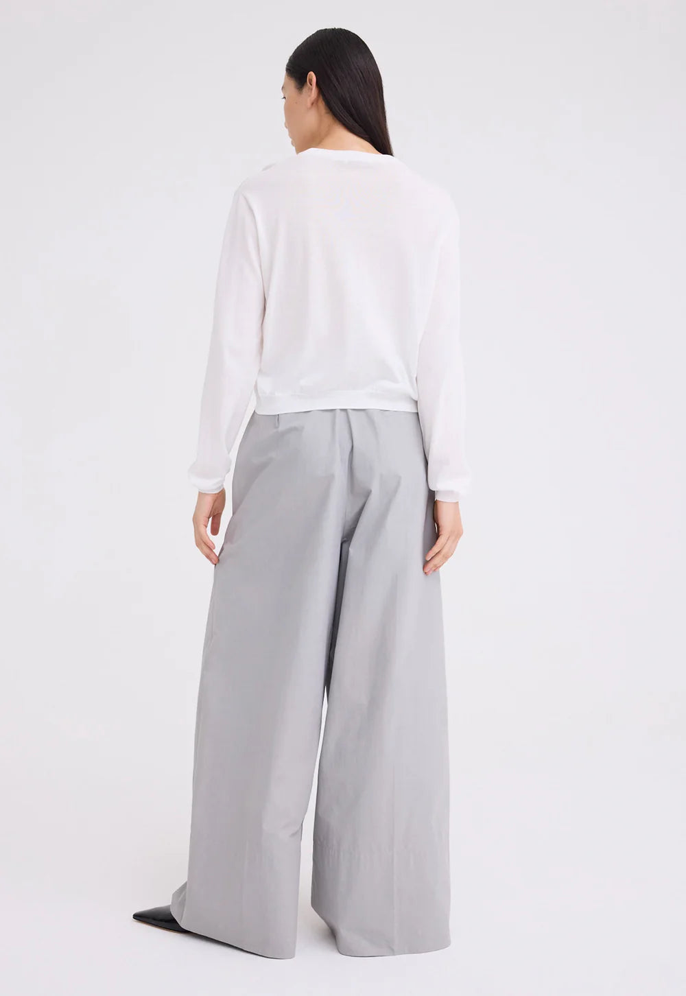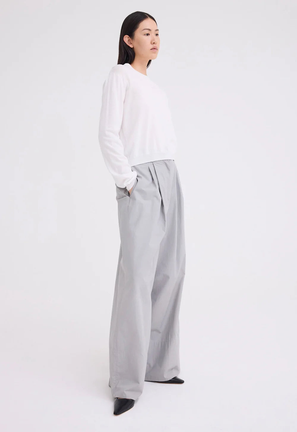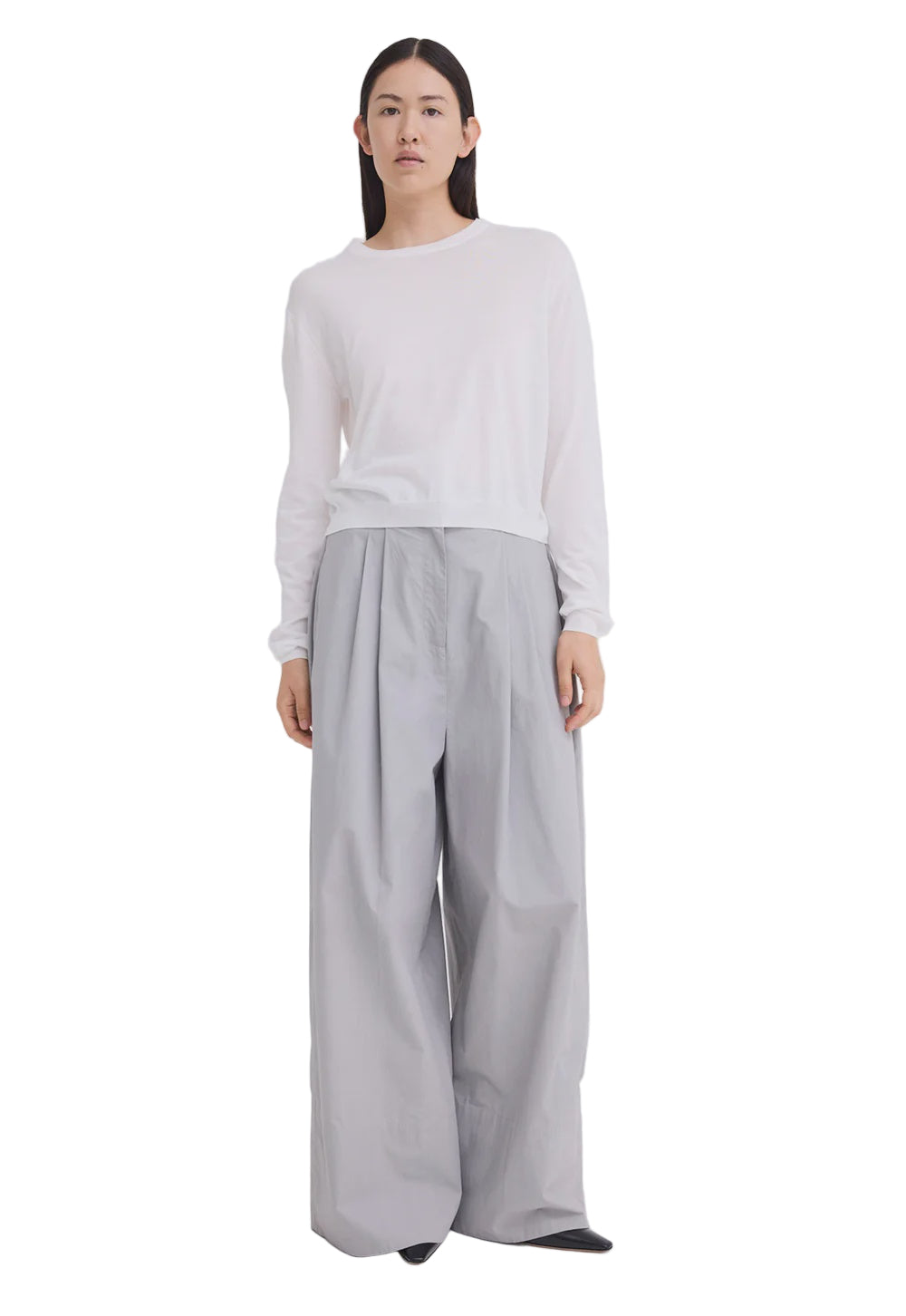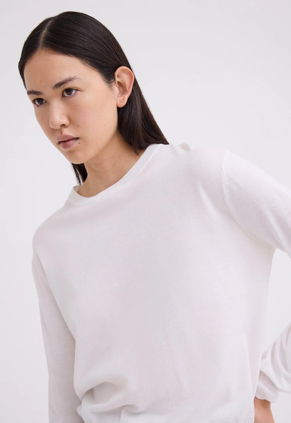 Jac and Jack Hex Sweater in White. An elevated lightweight knit, this cotton piece is refined and easy. With an elegant crew neckline and a relaxed fit throughout the body finished with knitted ribbed cuffs and hemline, this is a style to carry you all year round.