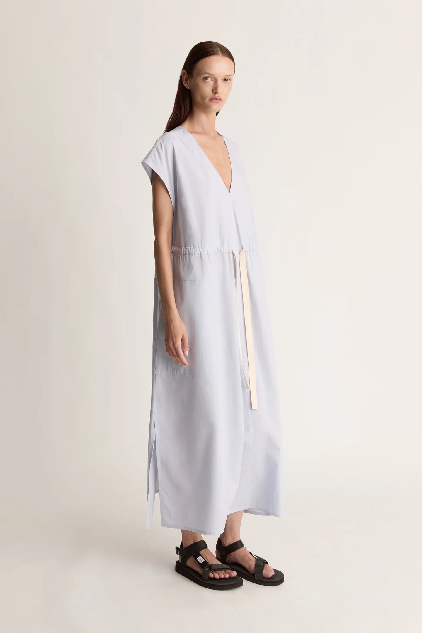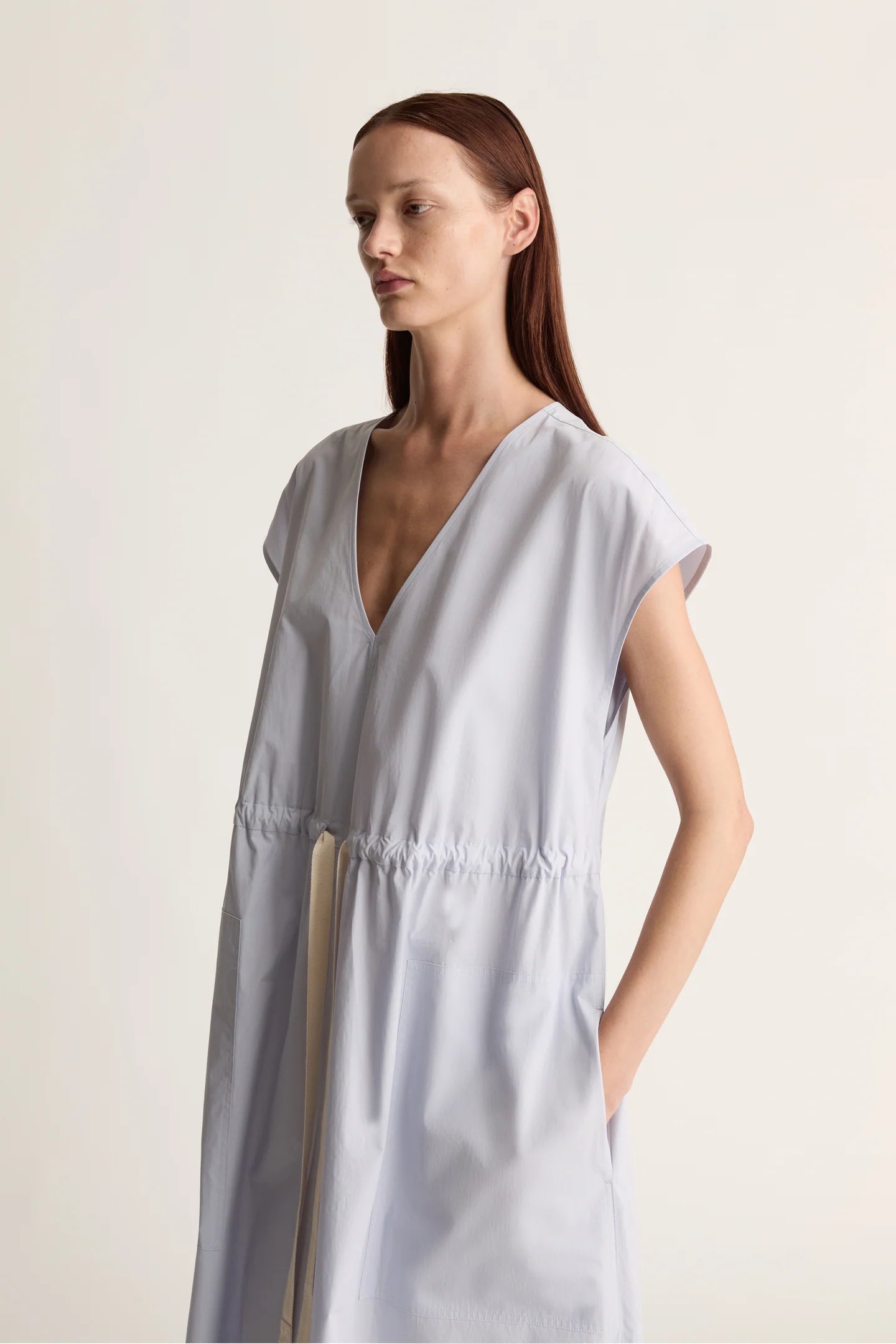 Lee Mathews Poplin V Neck Dress in Sky