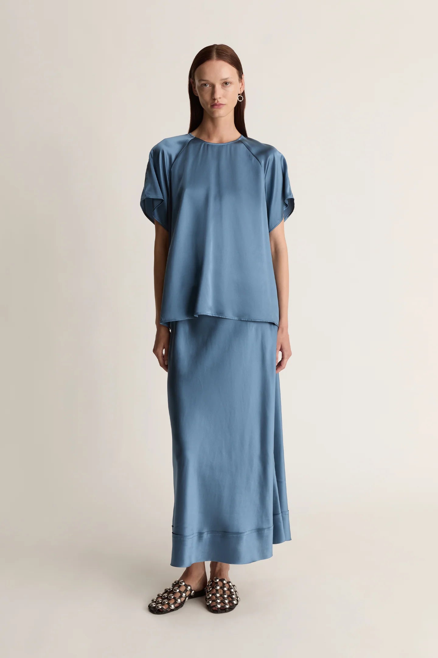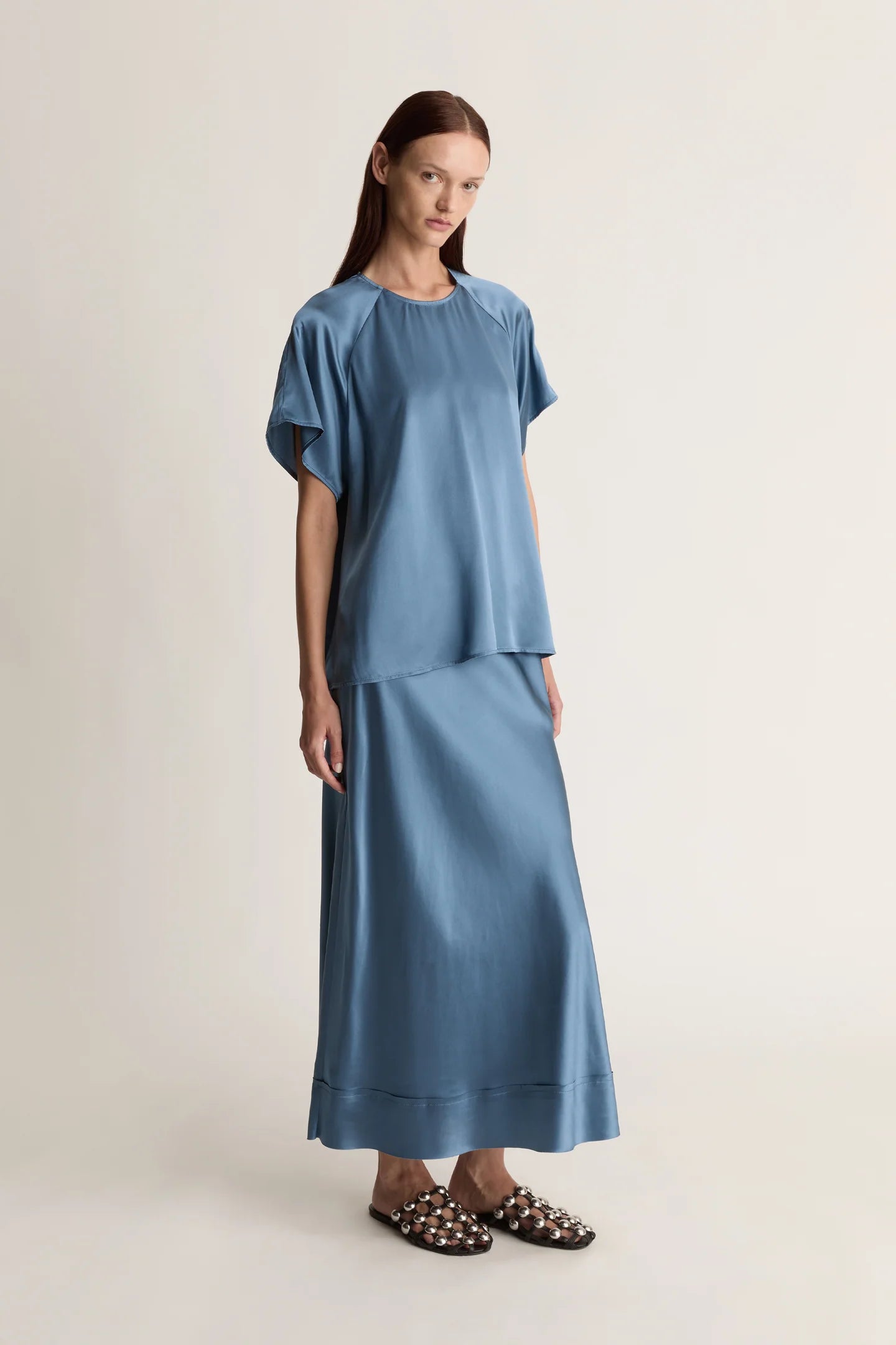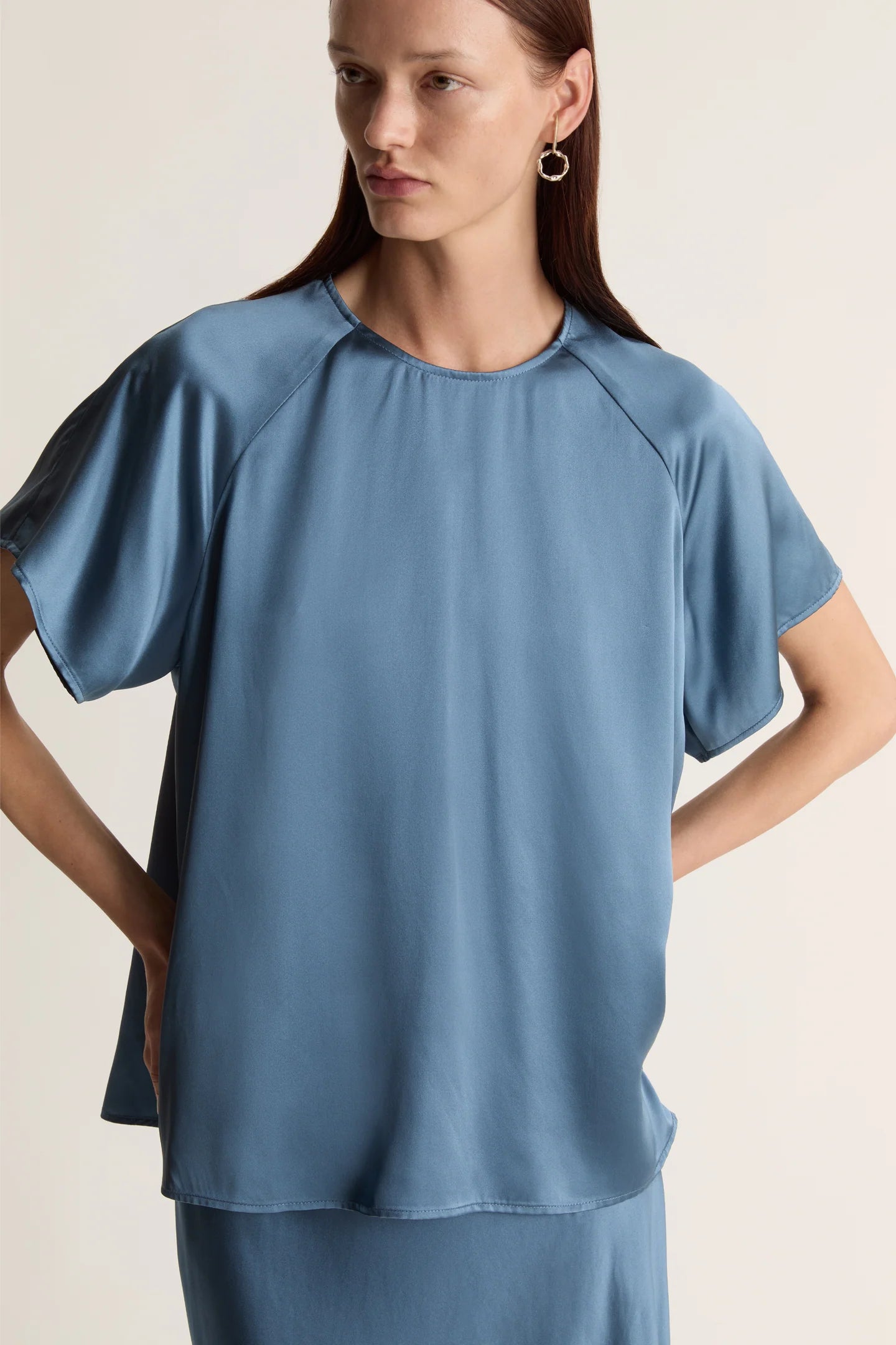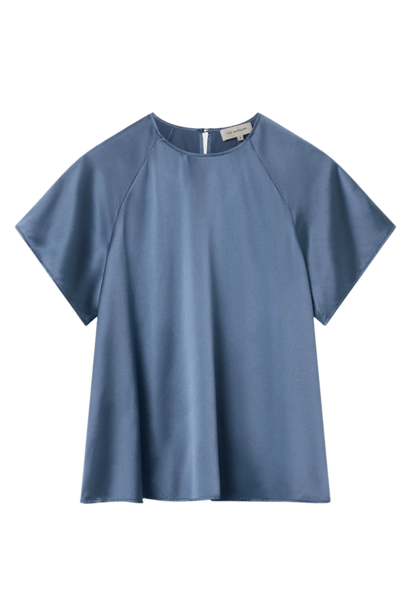 Lee Mathews Stella Silk Satin Raglan Tee in Teal.