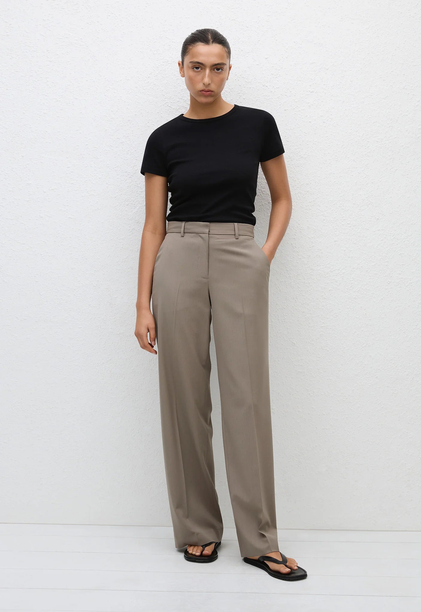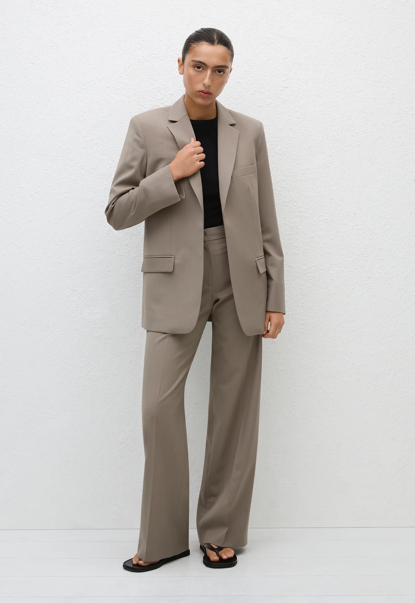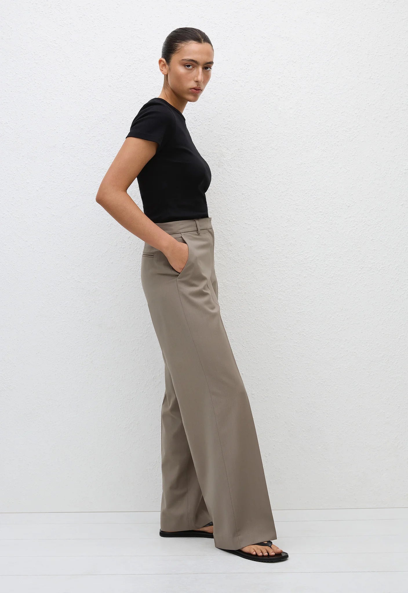 Matteau Relaxed Tailored Trouser in Taupe. A menswear-inspired flat front trouser, with a relaxed fit and tailored waist band. Made from a lightweight wool blend suiting, they are finished with side pockets and a fly-front zip. Style as a set with the matching Tailored Waistcoat and Relaxed Tailored Blazer or with our Ribbed Tank.