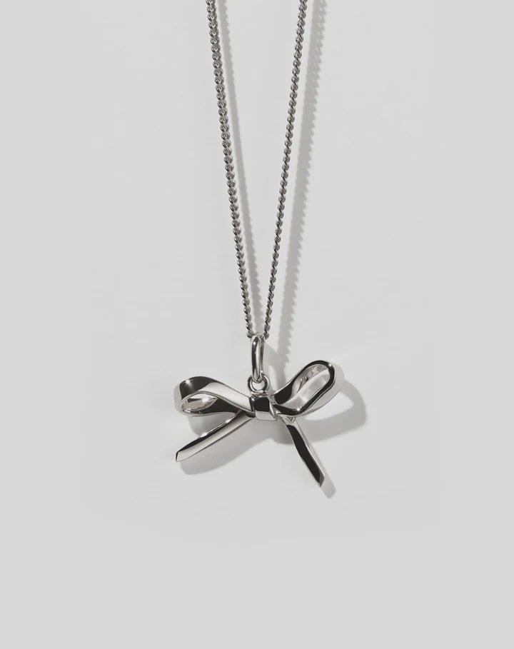 An unfussily-formed little bow that hangs from a fine chain, bringing a sense of play to the art of adornment.