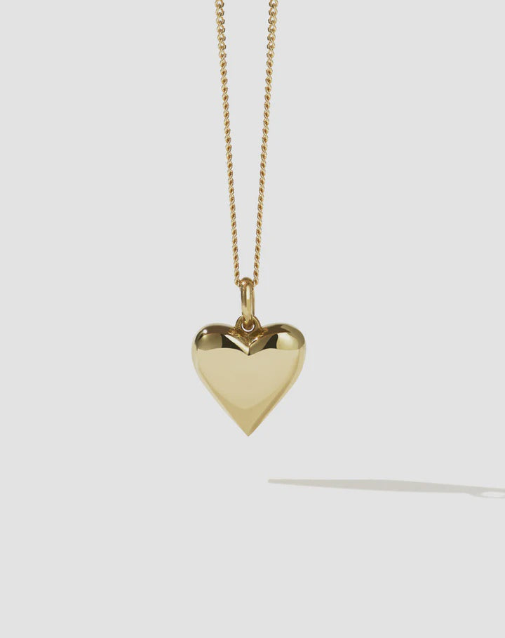 The Camille Necklace is a manifestation of love, holding universal values of adoration and affection. A solid, puffy heart, hung from a fine diamond curb chain, designed to embody a true sense of love, intended to be passed down through generations. The Camille Necklace is a forever piece, perfect for everyday as a gift to yourself or someone close to your heart.