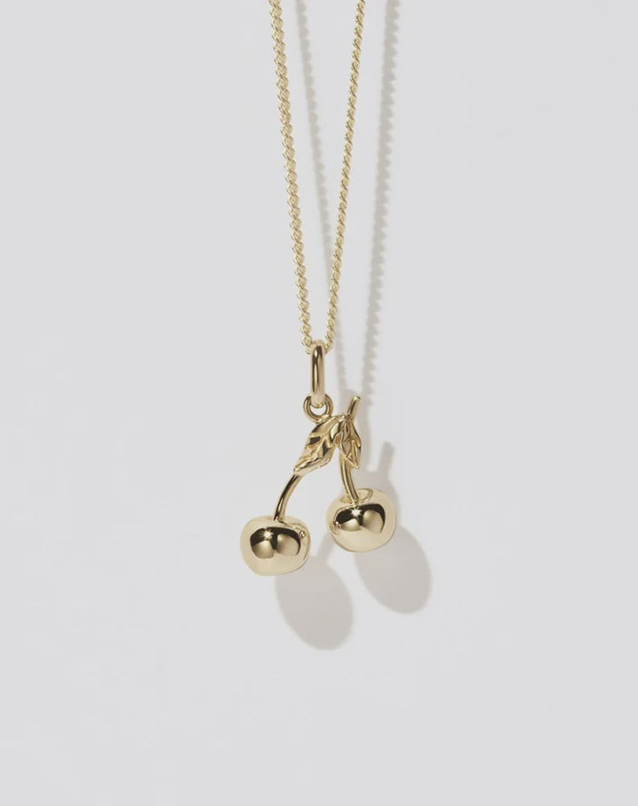 Meadowlark Cherry Charm Necklace 50cm in Gold Plate. The fruit of love, harmony, and good fortune, the cherry is a juicy addition to our beloved charm range. Solid and hung from a fine chain, it’s the perfect wear-everyday piece for the sweet and pure of heart.