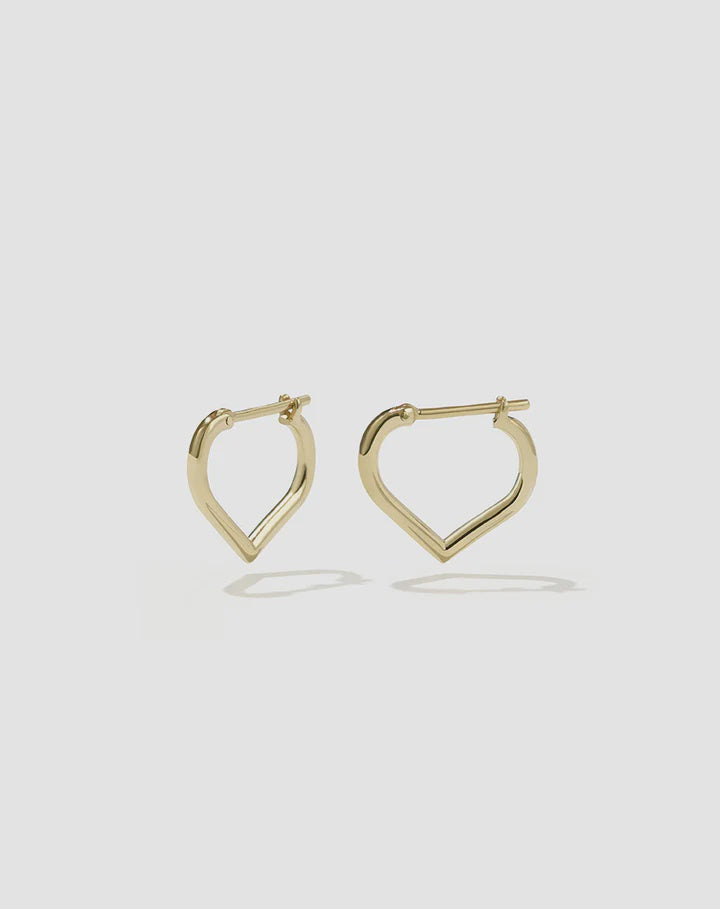 Heart hoop earrings that lock right through your ear. Approximately 14mm high.