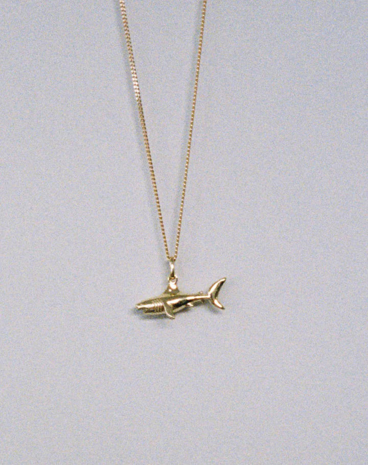 Meadowlark Shark Charm Necklace 50cm in Gold Plate. Determined, adaptable, and possessing the strongest of survival instincts, the shark is a powerful being. Petite in size and hung from a fine chain, it’s the perfect wear-everyday piece for those wanting to carry a daily reminder of their own power and self-sufficiency.
