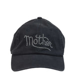 Metal head. A dad hat designed in black 100% cotton with MOTHER's name in silver studs on the front.