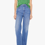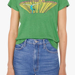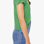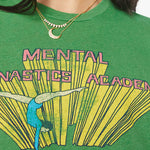 Mother The Sinful in Mental Gymnastics Jelly Bean. Flipping out. A soft crewneck with a slim fit for a vintage look and feel. Made from a SUPERIOR blend of cotton and linen in green, The Sinful in Mental Gymnastics features 3D text and a gymnast on the front.