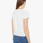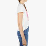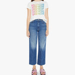 Mother The Boxy Goodie Goodie in Discotheque Fluff. Let's boogie. A soft crewneck with a slim fit for a vintage look and feel. Made from a recycled cotton blend in white, the tee features a rainbow text graphic.