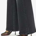 Mother The Hustler Roller Sneak in Not Today Satan. Good things come in small packages. For our LIL' MOTHER collection, we've adjusted the proportions of our top denim styles to complement petite body types 5’4” and under. The knee placement is higher, and the inseam and rise are shorter, so the style hits in all the right places.