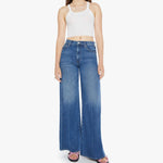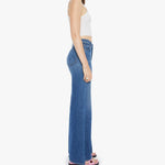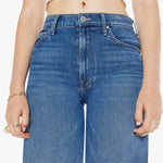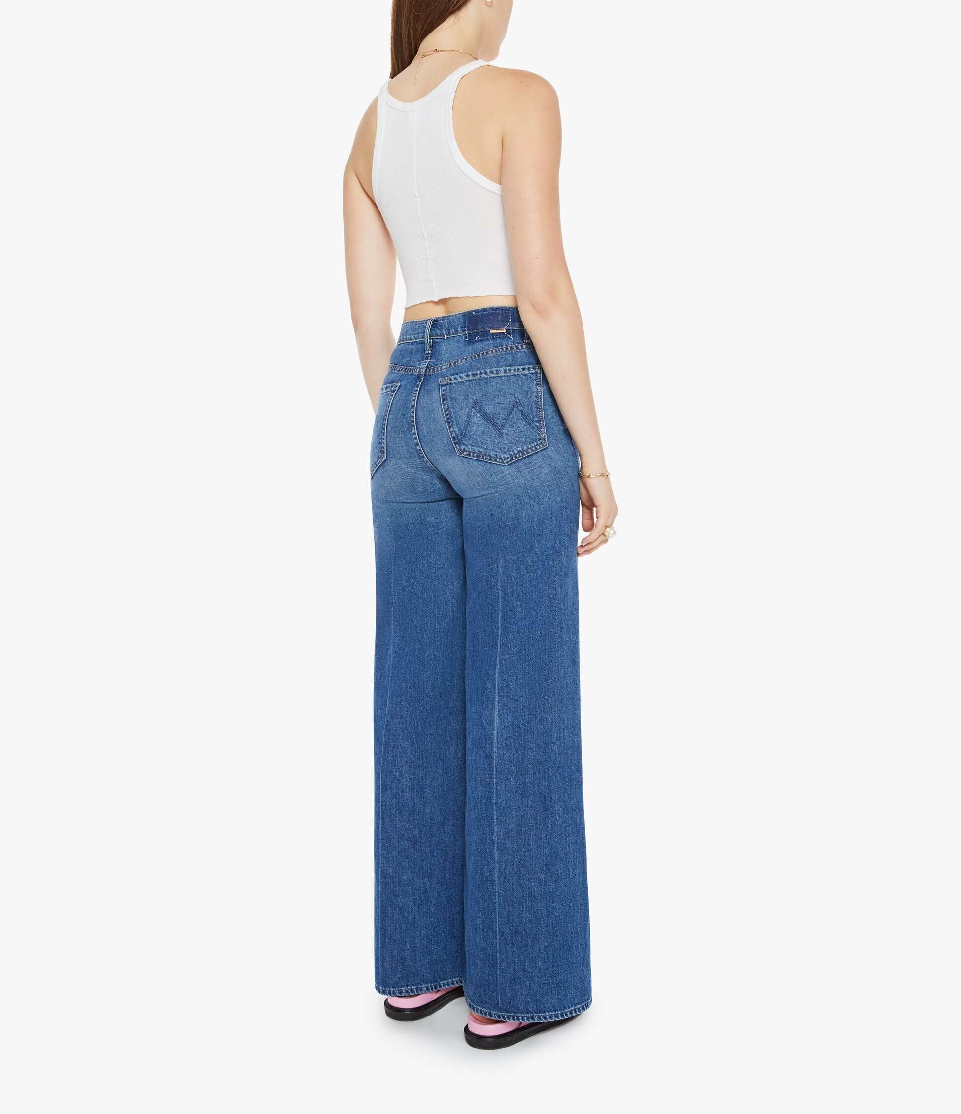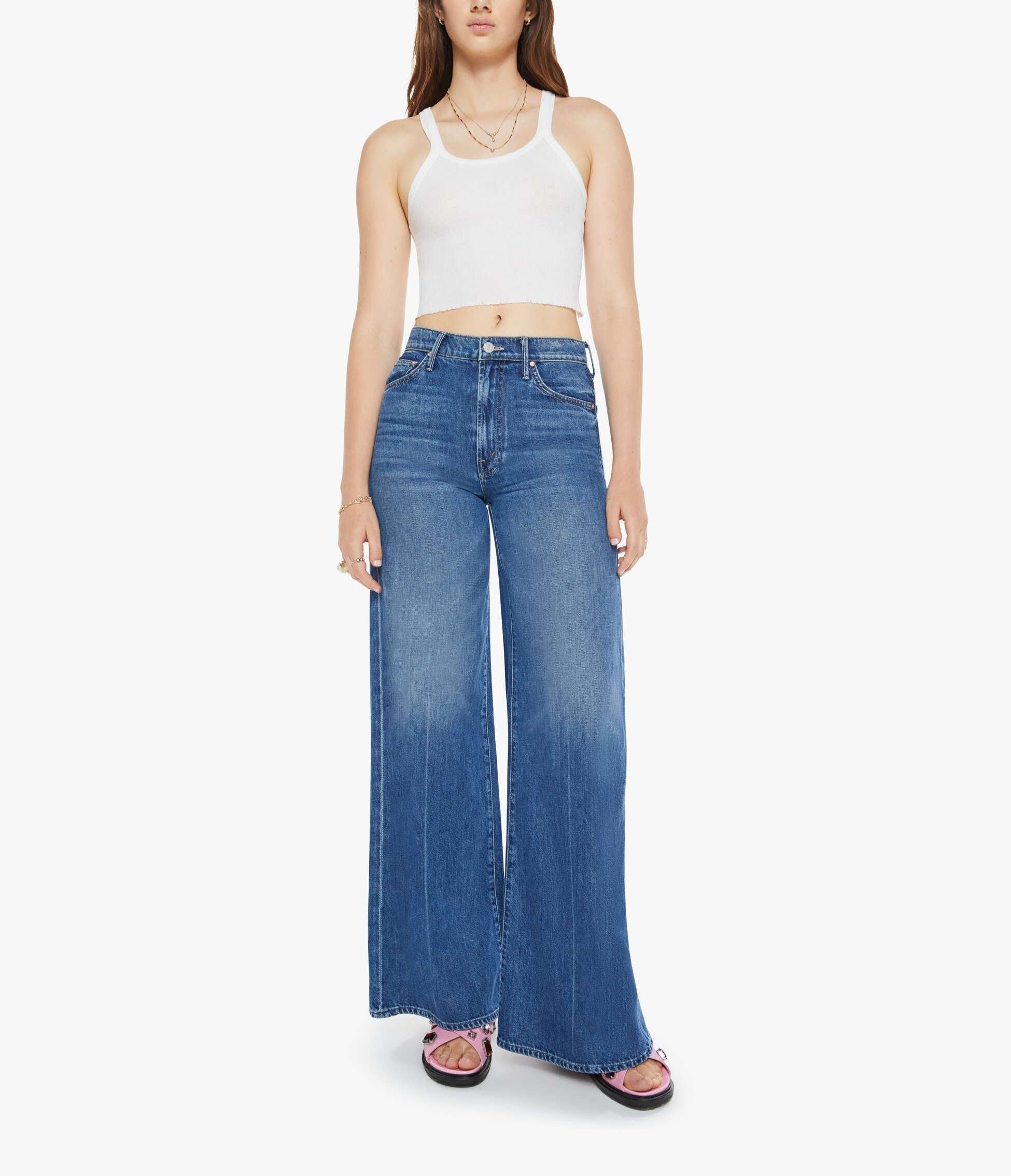 Glow up. Wide leg pants with a high rise, long 32-inch inseam and a clean hem. Made from rigid SUPERIOR denim, Rags To Riches is a mid-blue wash with whiskering and fading at the knee.