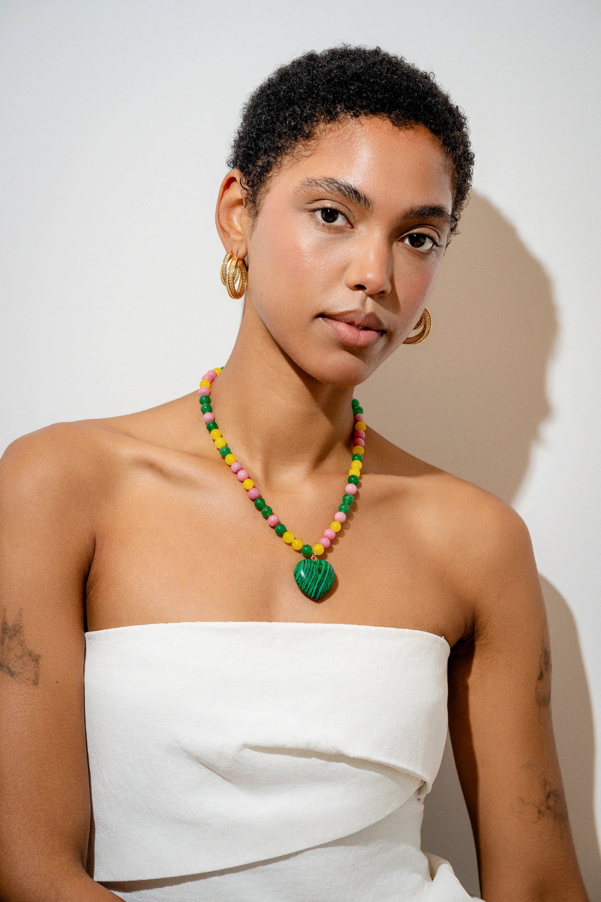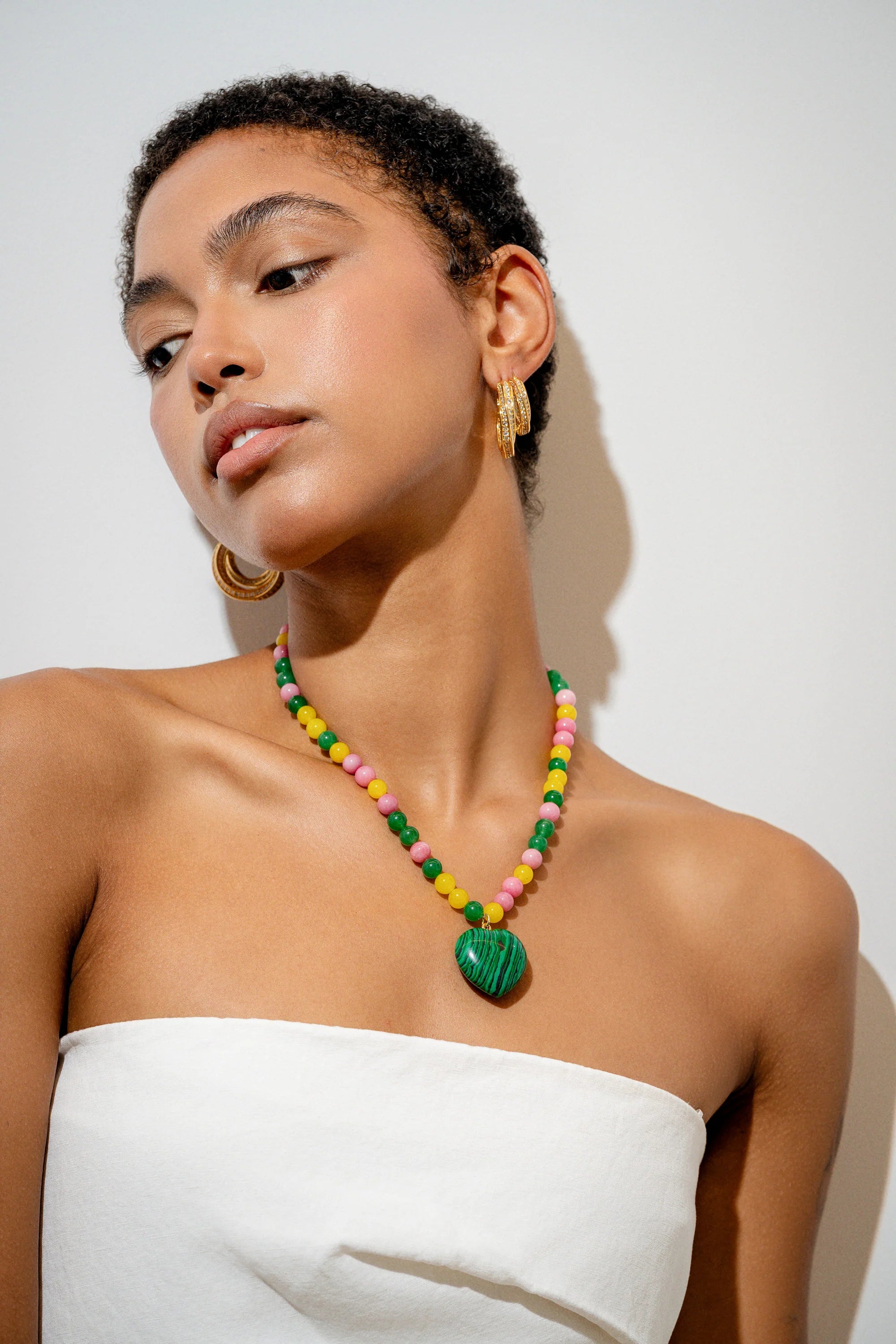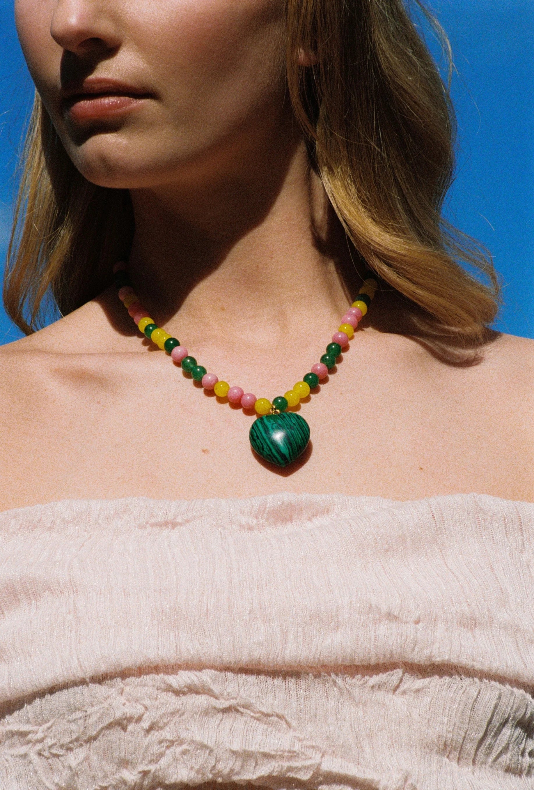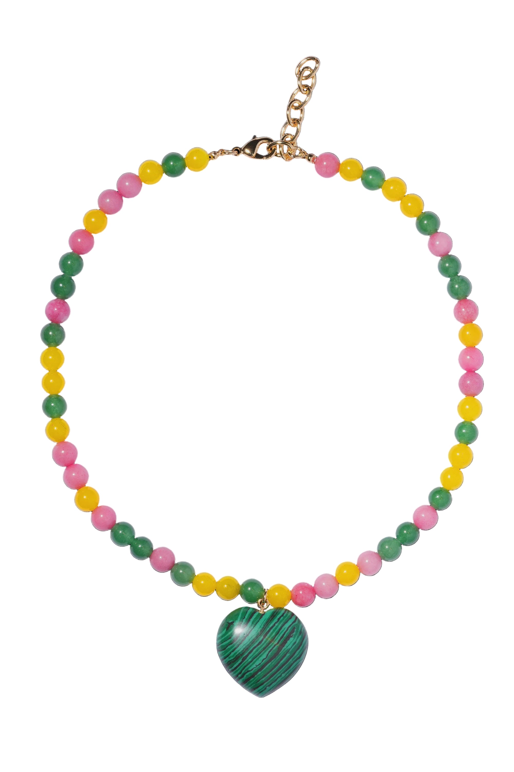 Crystal Haze Dua Necklace in Multicolour. Meet the star of your summer jewelry box, our Dua Necklace! The word Dua represents love which is something we always celebrate at Crystal Haze Jewelry in all it’s different forms. Created with a concoction of natural stones, this necklace is available in either multi-coloured (malachite, jade and red carnelian) or red and pink (rose quartz and red carnelian) both of which are thought to be full of healing properties. Believers say Malachite represents transformation and protection, Jade: harmony and well-being, Red Carnelian: energy and motivation and Rose Quartz: love and self-compassion. Both styles contain a combination of beautifully harmonious properties making it the perfect gift for those who lean into their divine.