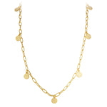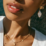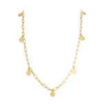 Fairley Golden Beachcomber Charm Necklace. Capture the essence of coastal charm with the Golden Beachcomber Charm Necklace. Crafted from lustrous sterling silver and plated in 18k gold, this delicate piece features 9 beachcomber-inspired charms that adds a touch of seaside elegance to any outfit. Perfect for those who cherish the tranquility of ocean breezes and sandy shores, this necklace effortlessly blends timeless style with a laid-back, beachy vibe.