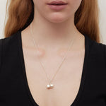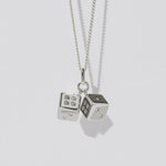 Meadowlark Dice Charm Necklace 50cm in Sterling Silver. Representing fortune, fate and the randomness of life. A playful pair of dice are hung from a fine chain, it’s the perfect wear-everyday piece for those who want to carry a little luck with them always.