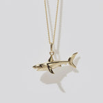 Meadowlark Shark Charm Necklace 50cm in Gold Plate. Determined, adaptable, and possessing the strongest of survival instincts, the shark is a powerful being. Petite in size and hung from a fine chain, it’s the perfect wear-everyday piece for those wanting to carry a daily reminder of their own power and self-sufficiency.