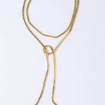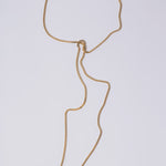 Pearl Octopuss.y Box Chain Rope in Gold. This super convertible tie-style necklace is a staple in our jewelry wardrobe. The high-polish box chain can be worn a multitude of ways. Try it tied in the front paired with a white shirt for a relaxed look, or pin it with one of our brooches for a chic take on the bolo tie.