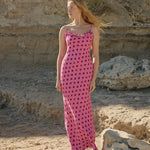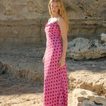 Aston Studio Posey Dress in Orchid Dot. The Posey Dress Orchid Dot is a soft feminine maxi dress. Cut on the bias to provide a flattering silhouette, the Posey is crafted with a cupro viscose blend that offers an effortless, breathable summer style.