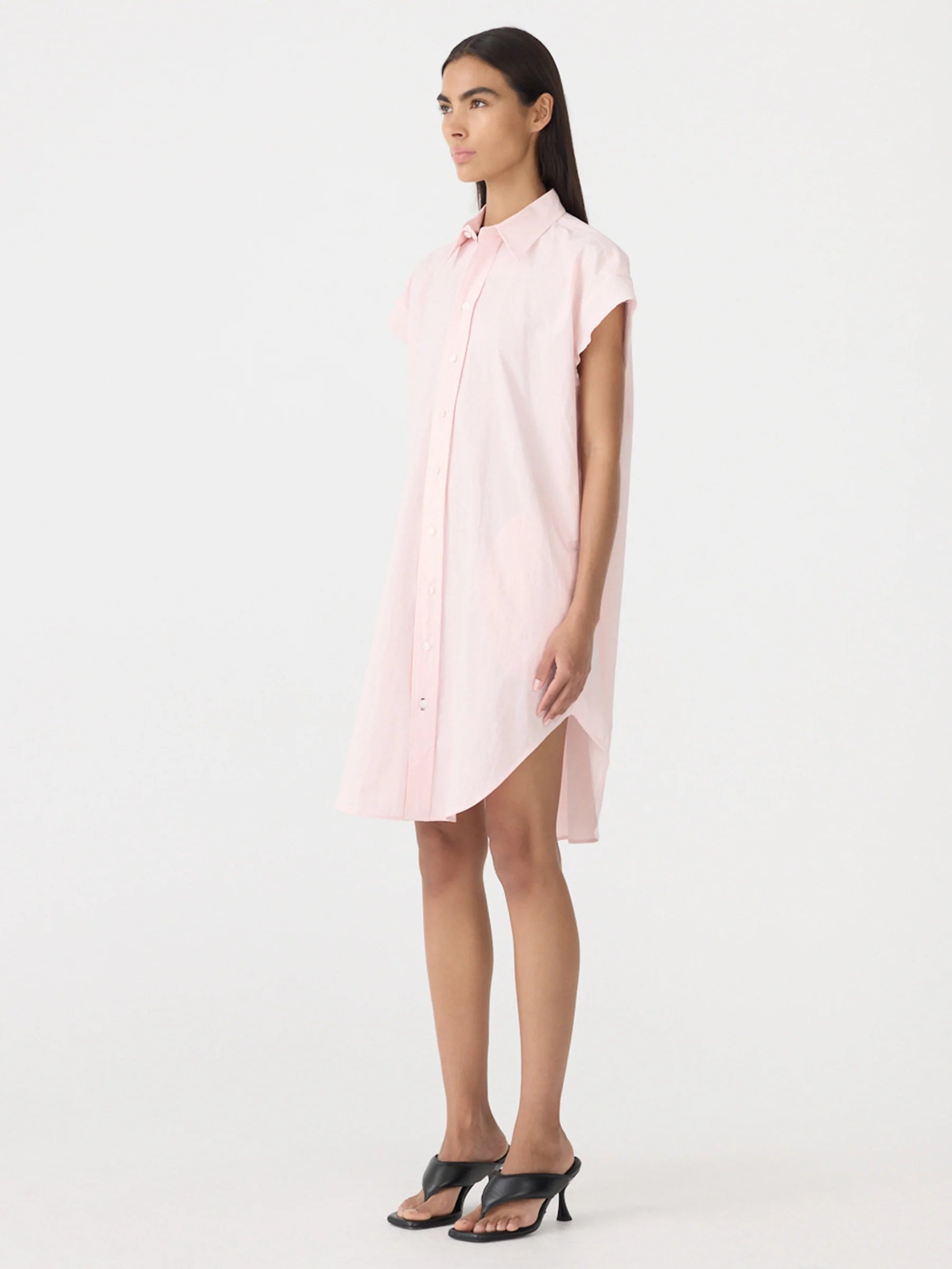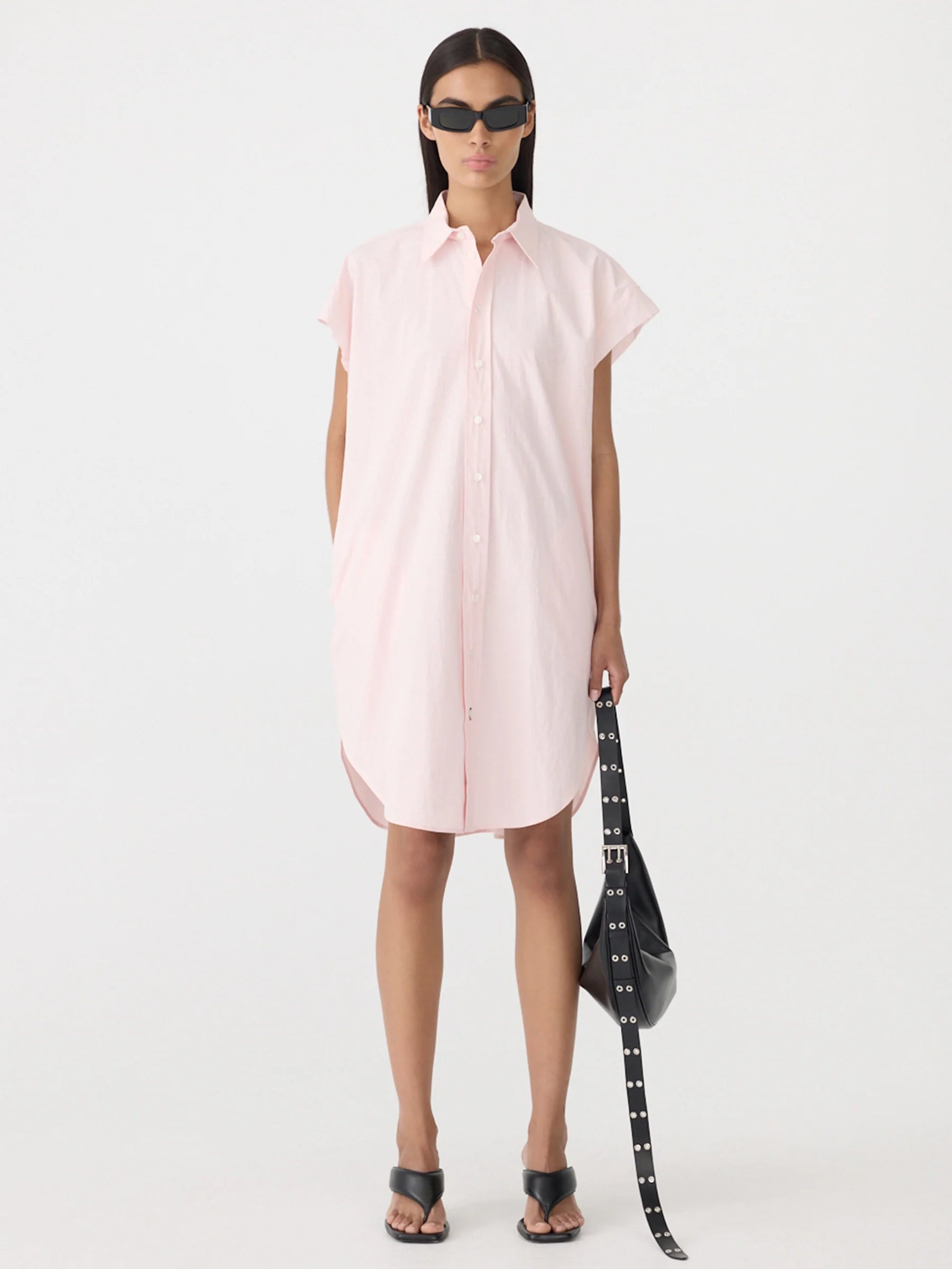 Bassike Crushed Cotton Shirt Dress in Soft Pink