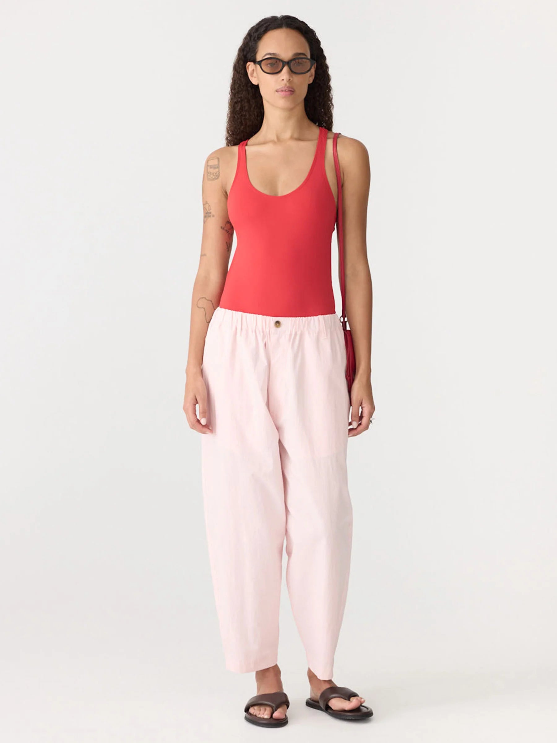 Bassike Crushed Cotton Summer Pant in Soft Pink