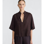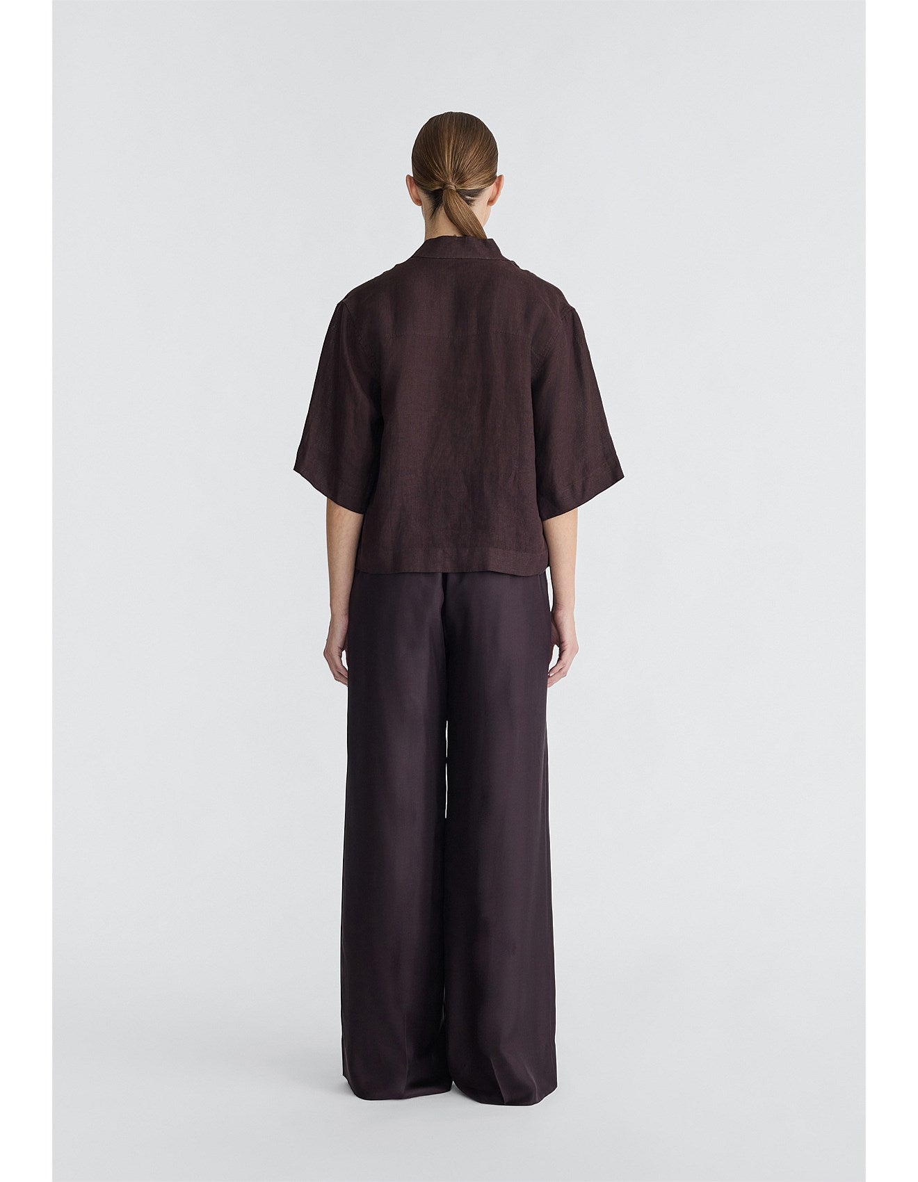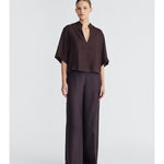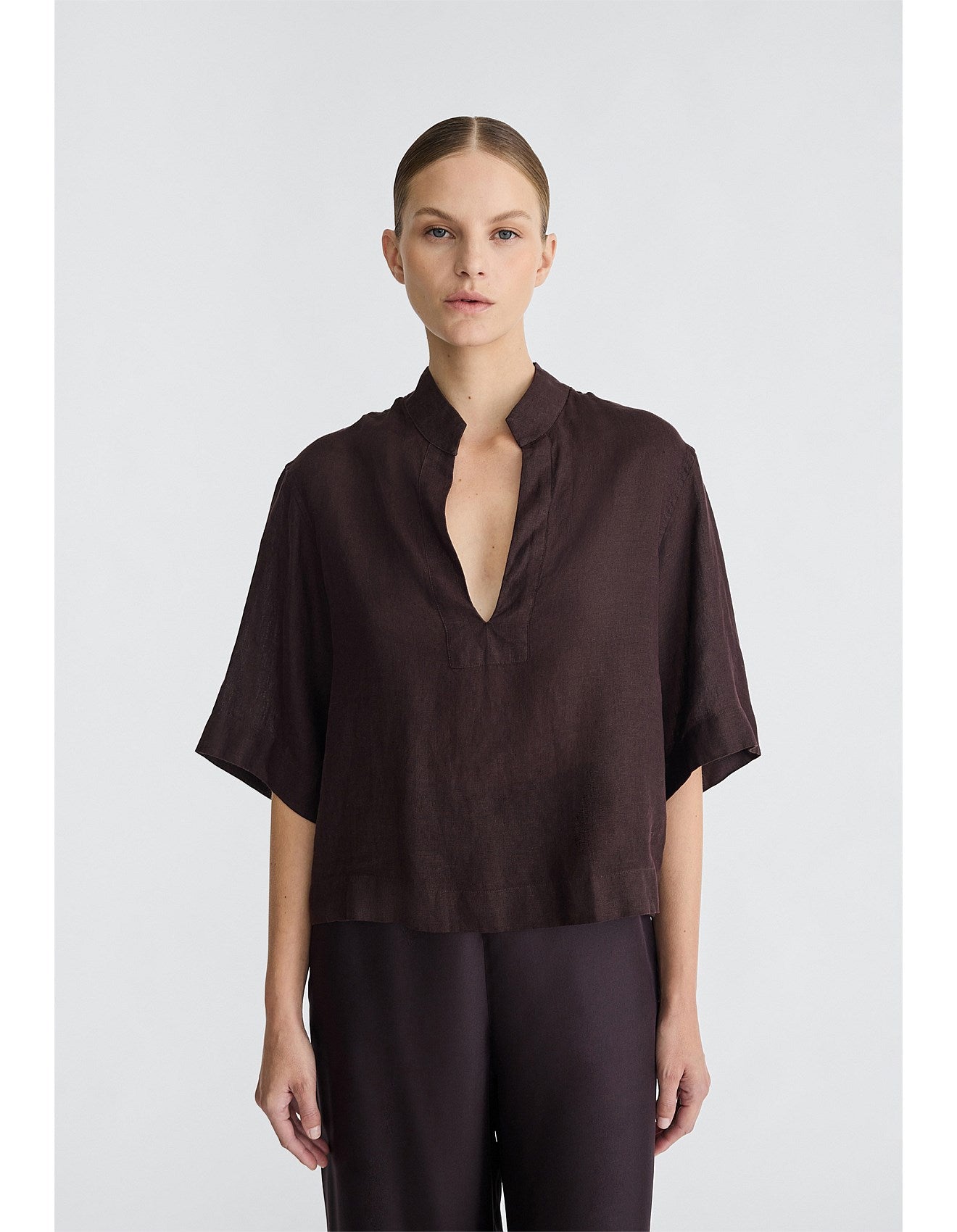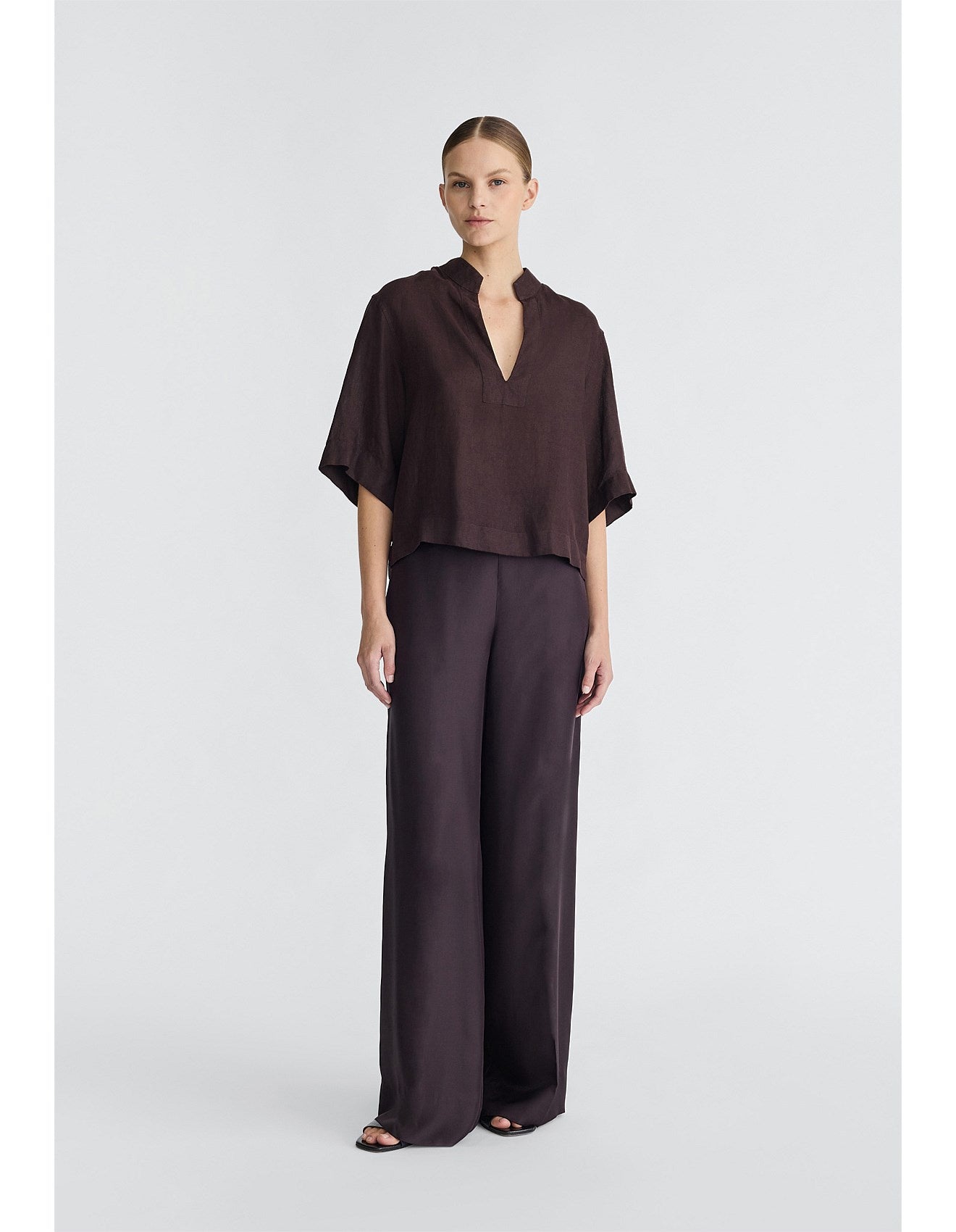 Jac and Jack Iris Top in Auber. Crafted from linen, this plunging v-neck shirt is the perfect blend of comfort and effortless style. With a relaxed fit and subtle tailoring, it offers an easy-going yet polished look ideal for warm weather. Whether layered or worn solo, it’s a versatile wardrobe essential that exudes timeless appeal.