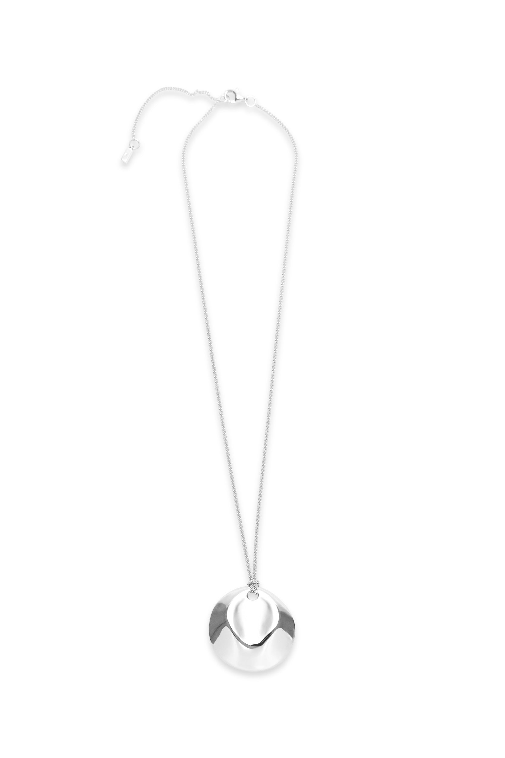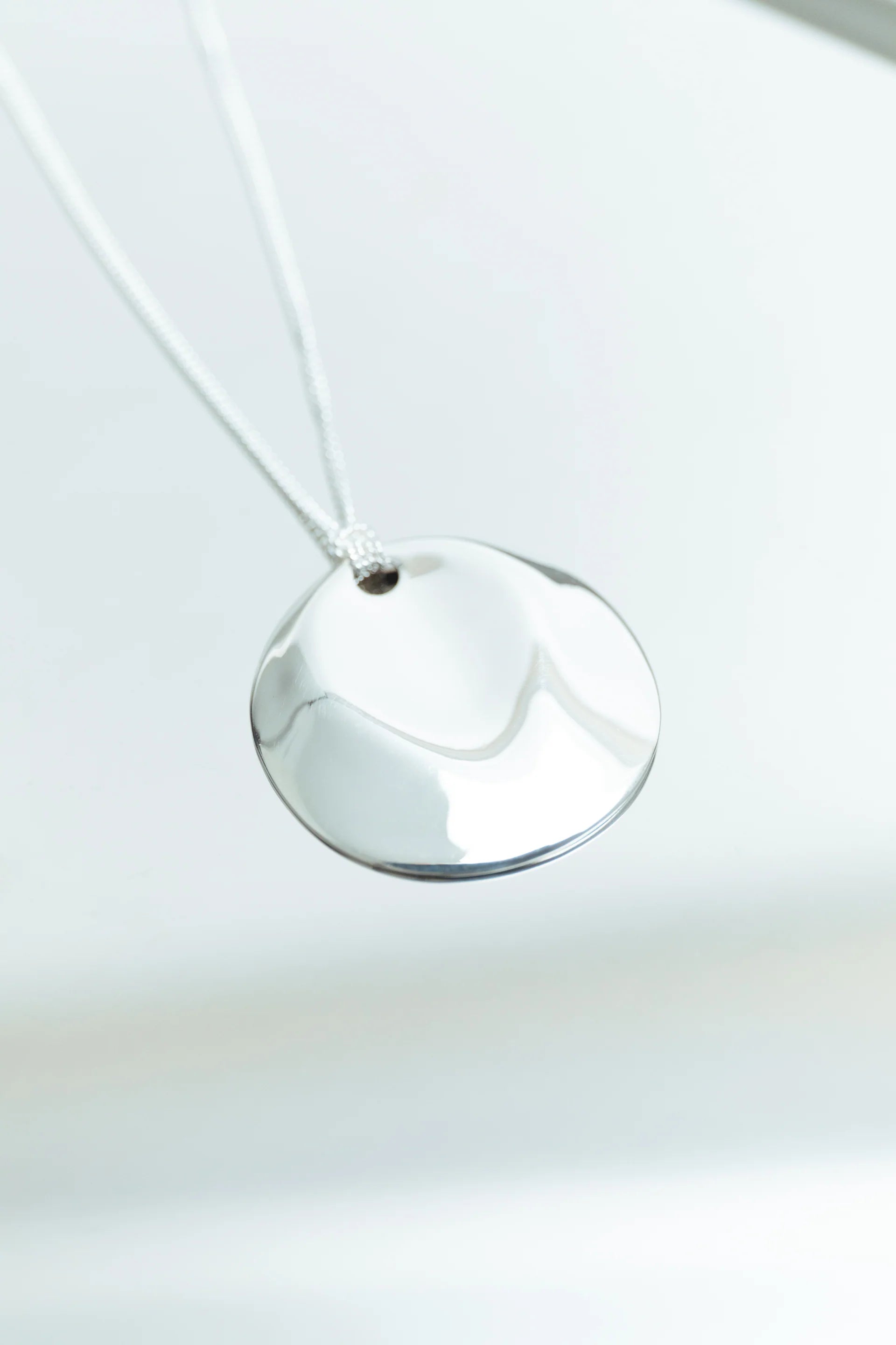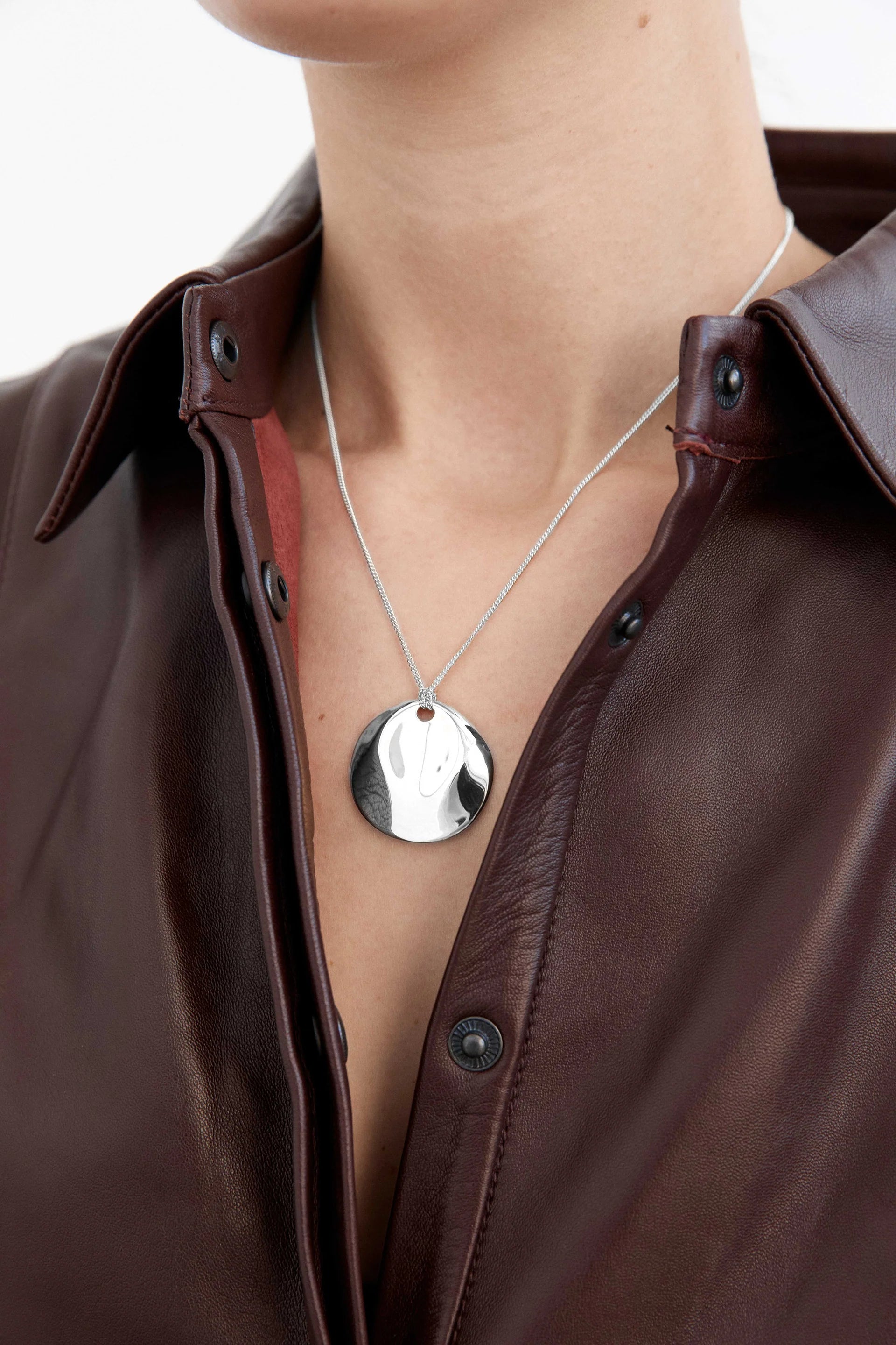 Nina Gordon Dented Medallion Necklace In Silver. Proudly crafted in recycled 925 sterling silver, Brass, 9k & 14k gold