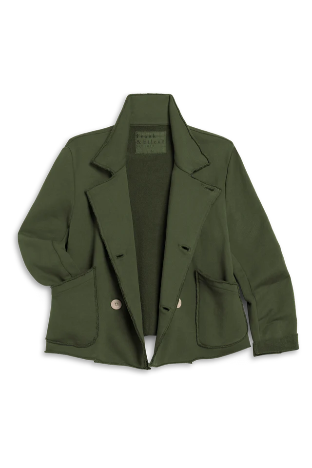 Frank and Eileen Mini Belfast Cropped Peacoat in Caper. Our Belfast Sweatshirt Peacoat was love at first sight! This mini, everyday version has all the best parts of the original—luxurious horn buttons, scrunchable sleeves, and a statement collar — with the cutest cropped fit!