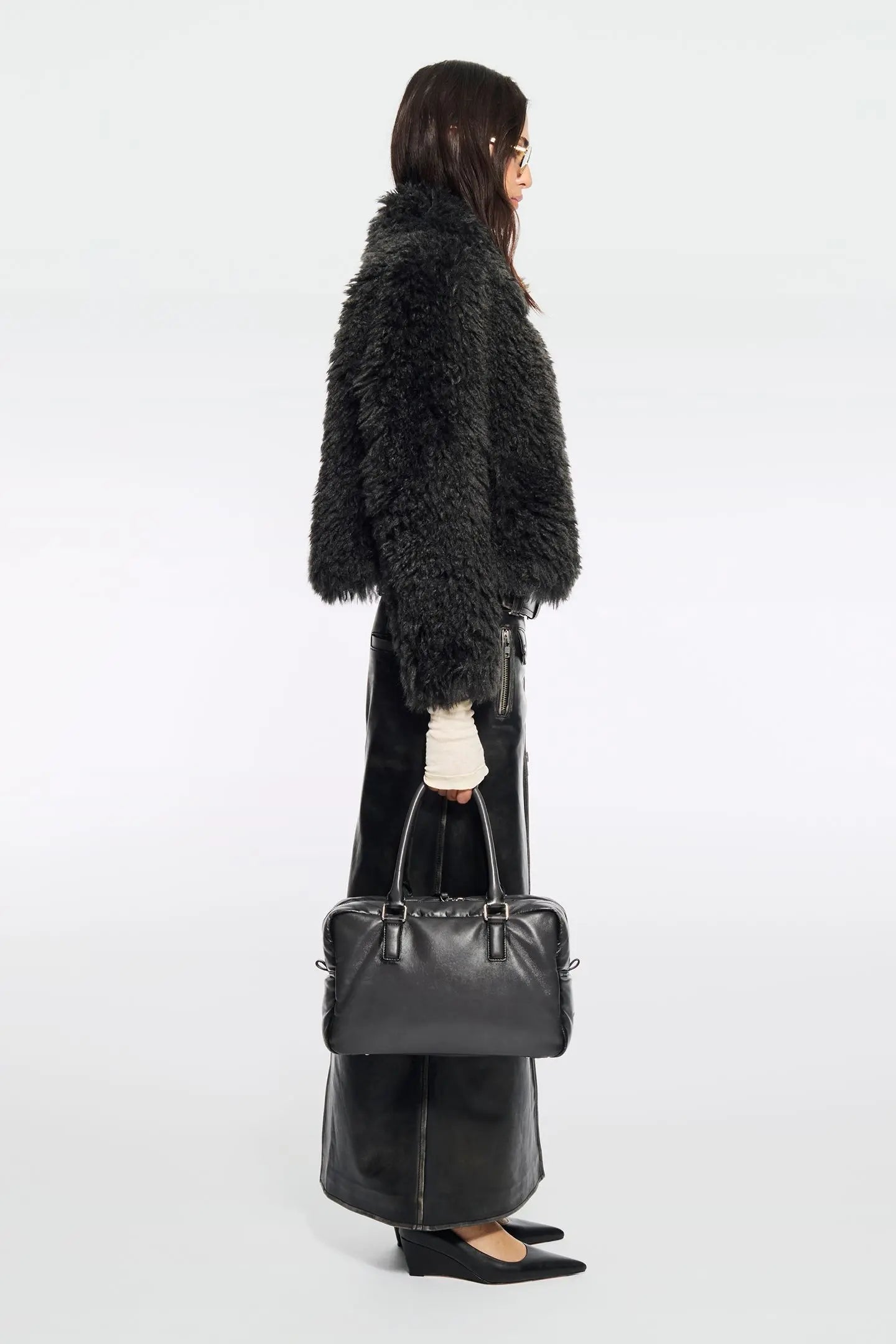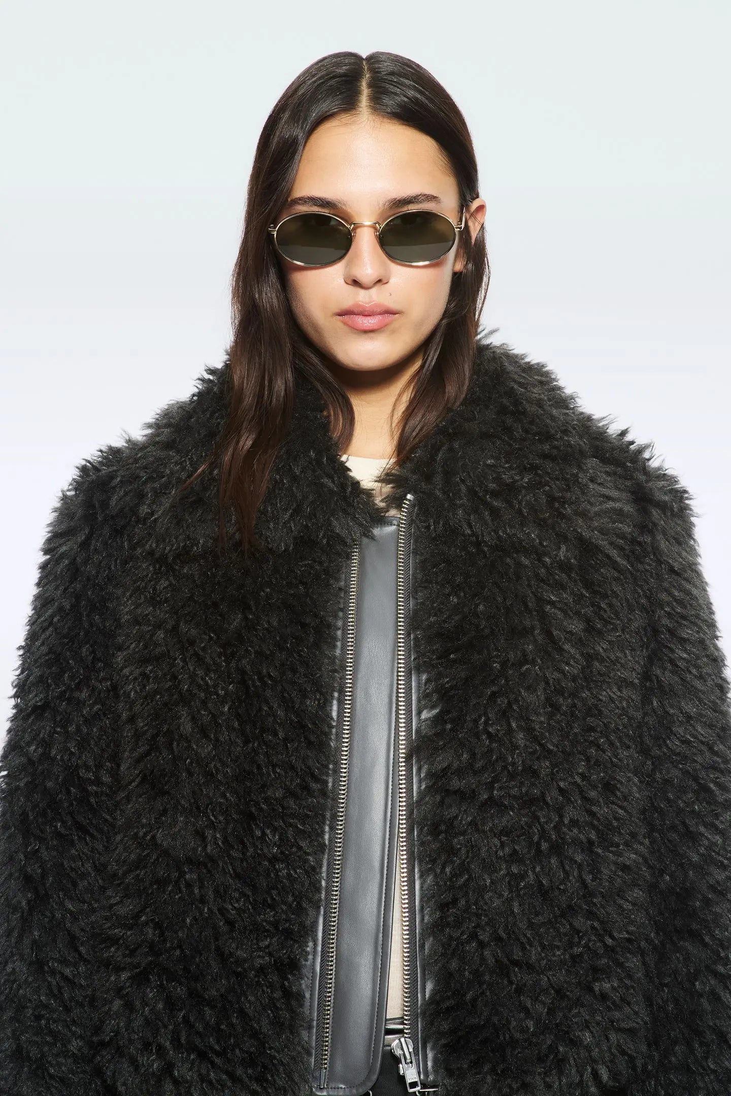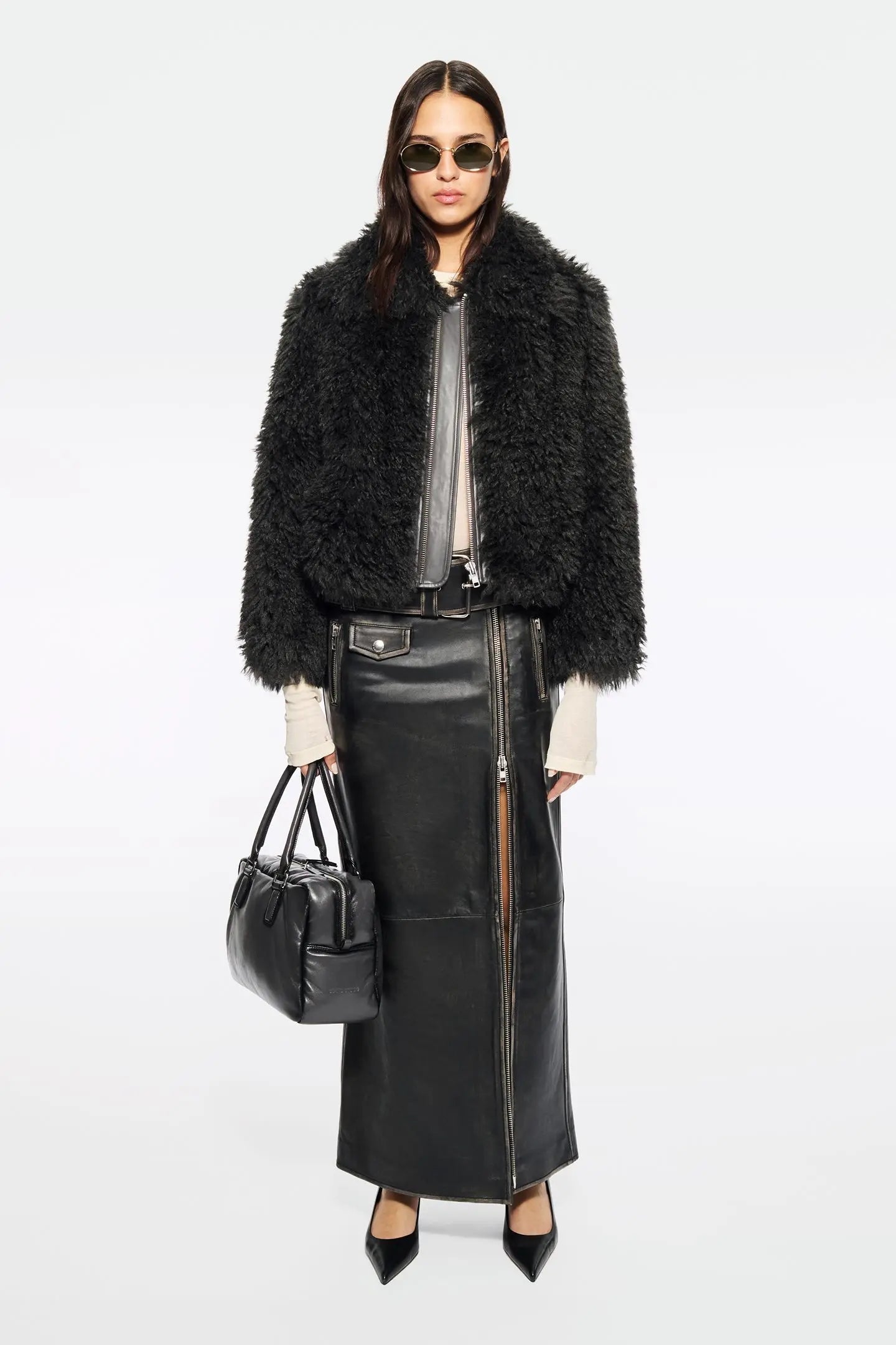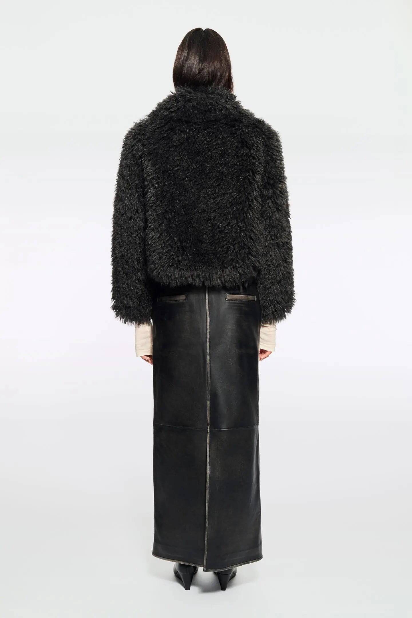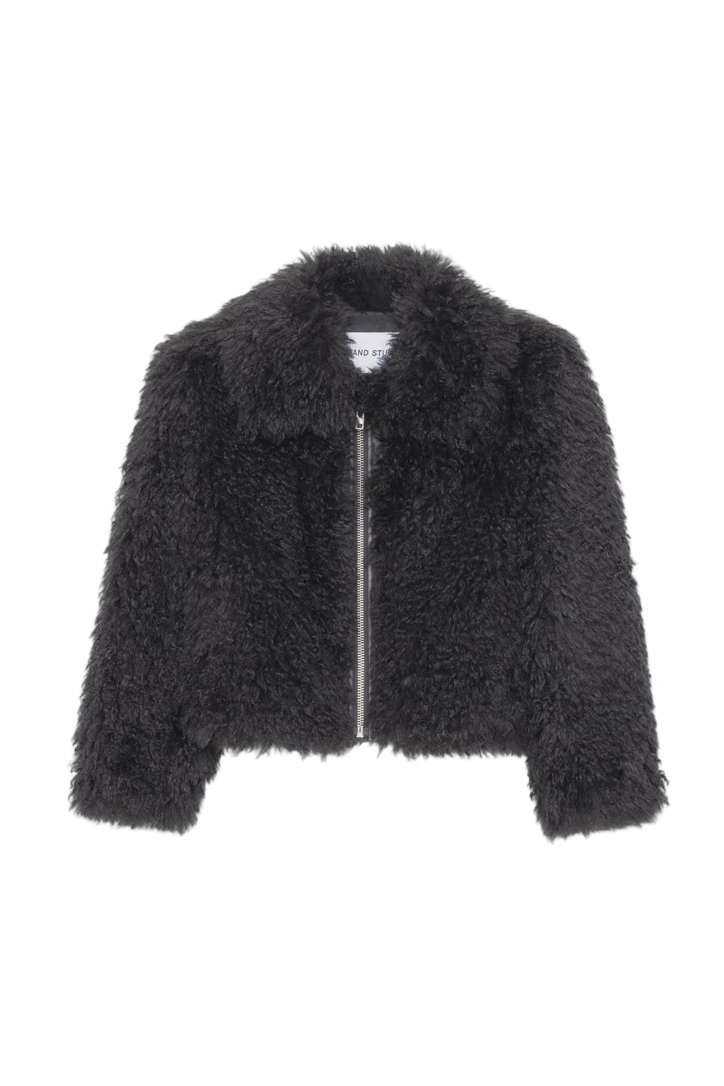 Stand Studio Zaylee Jacket in Smoke Grey. Shaped to a boxy fit with an oversized collar and front zip. The design includes faux leather trims, a suede-lined inside pocket and full lining.