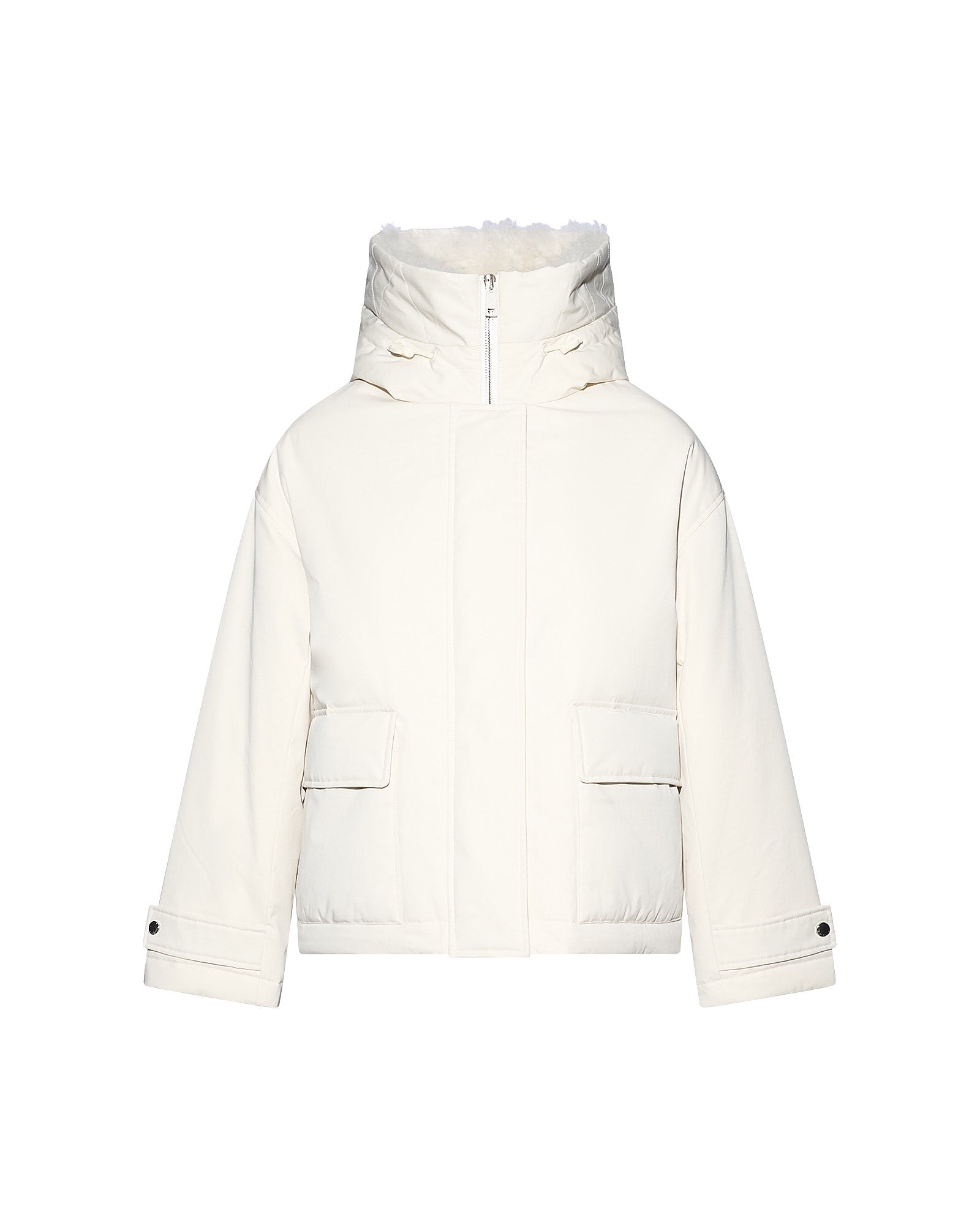 Yves Salomon Blended Cotton Jacket in 62cm in Ivory. The short, boxy shape of this parka can also be worn cinched at the hem. The jacket has been tested to -10°C to guarantee a perfect protection against the cold, while its waterproof cotton fabric is storm-resistant. A hood lined in softest Merino shearling and a hood trim in long-haired sheepskin offer additional options for styling and warmth.