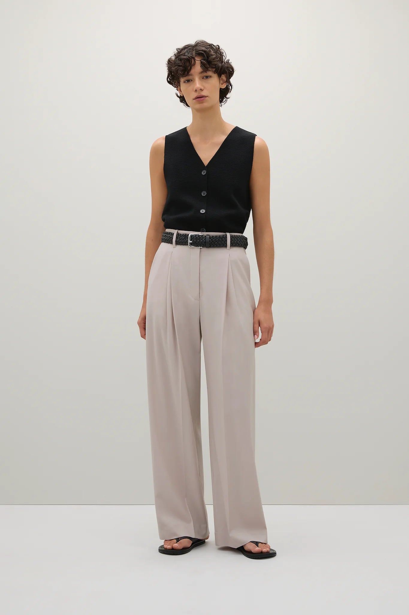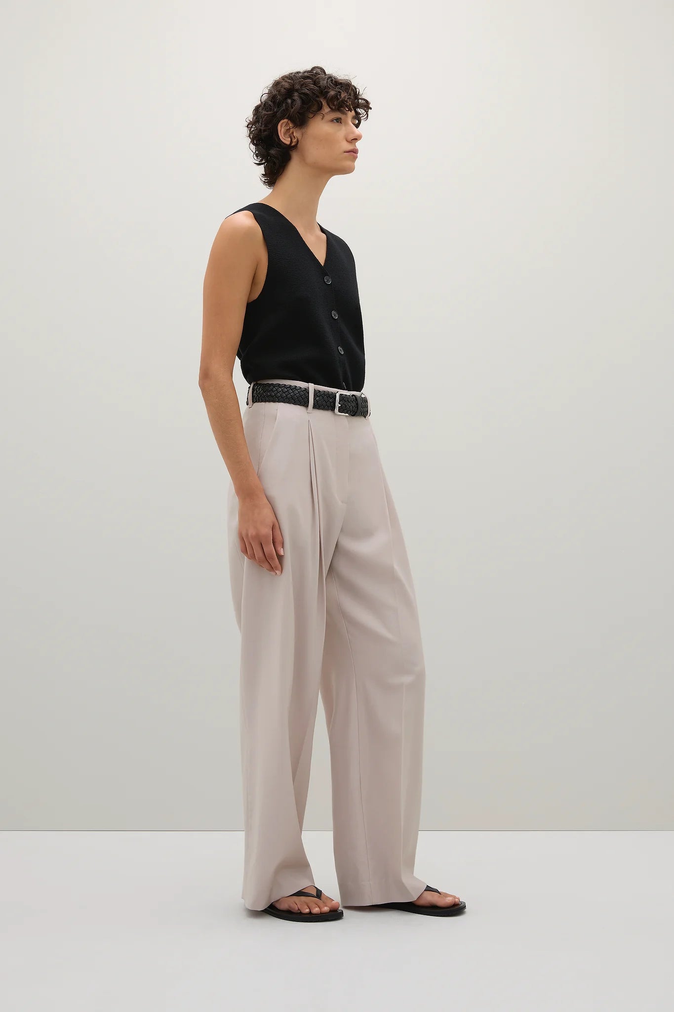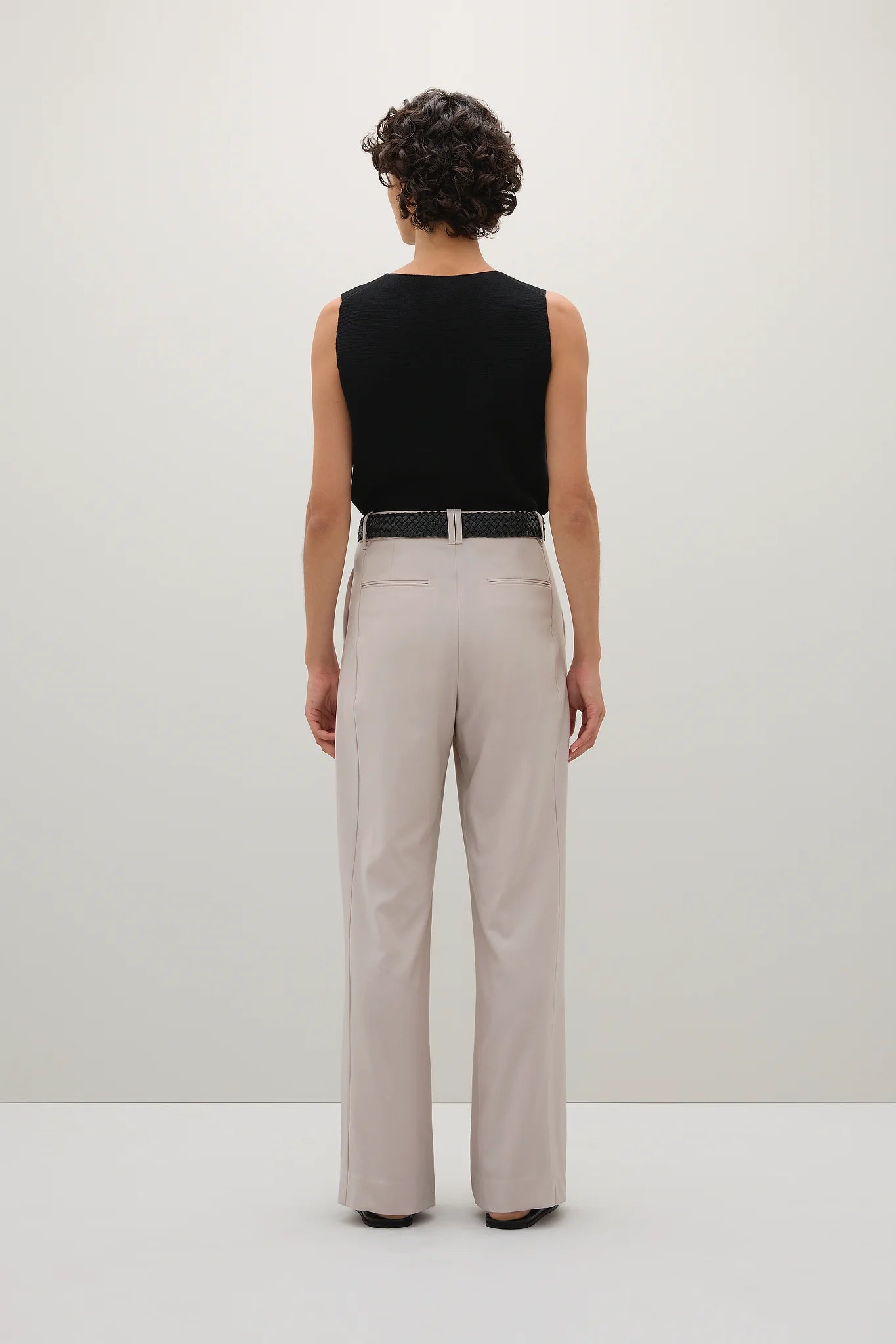 A Emery Goddard Pant in Oyster. The Goddard Pant drapes effortlessly on the body.