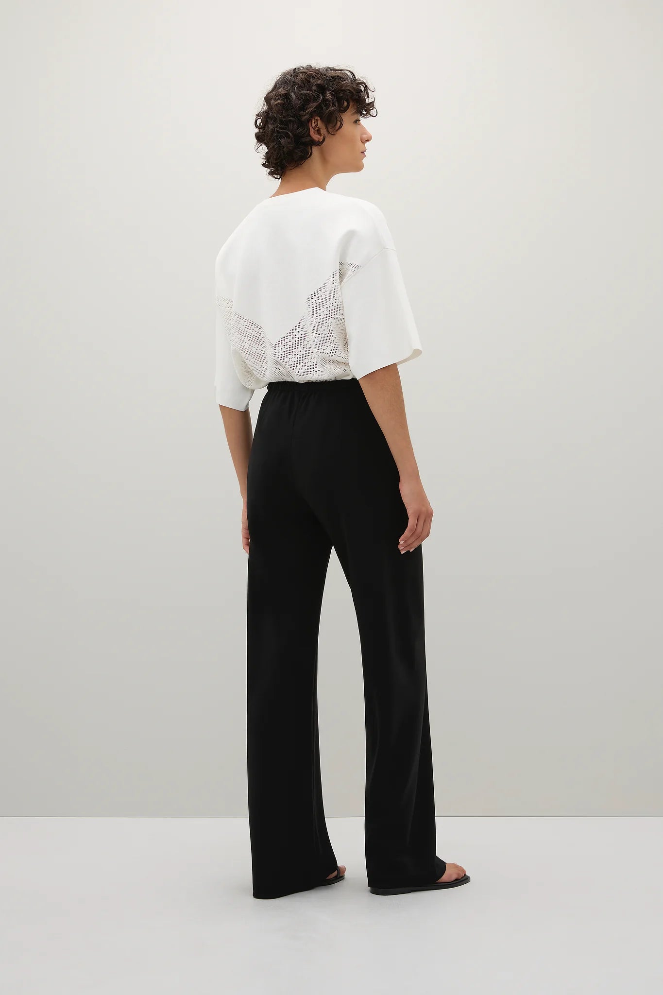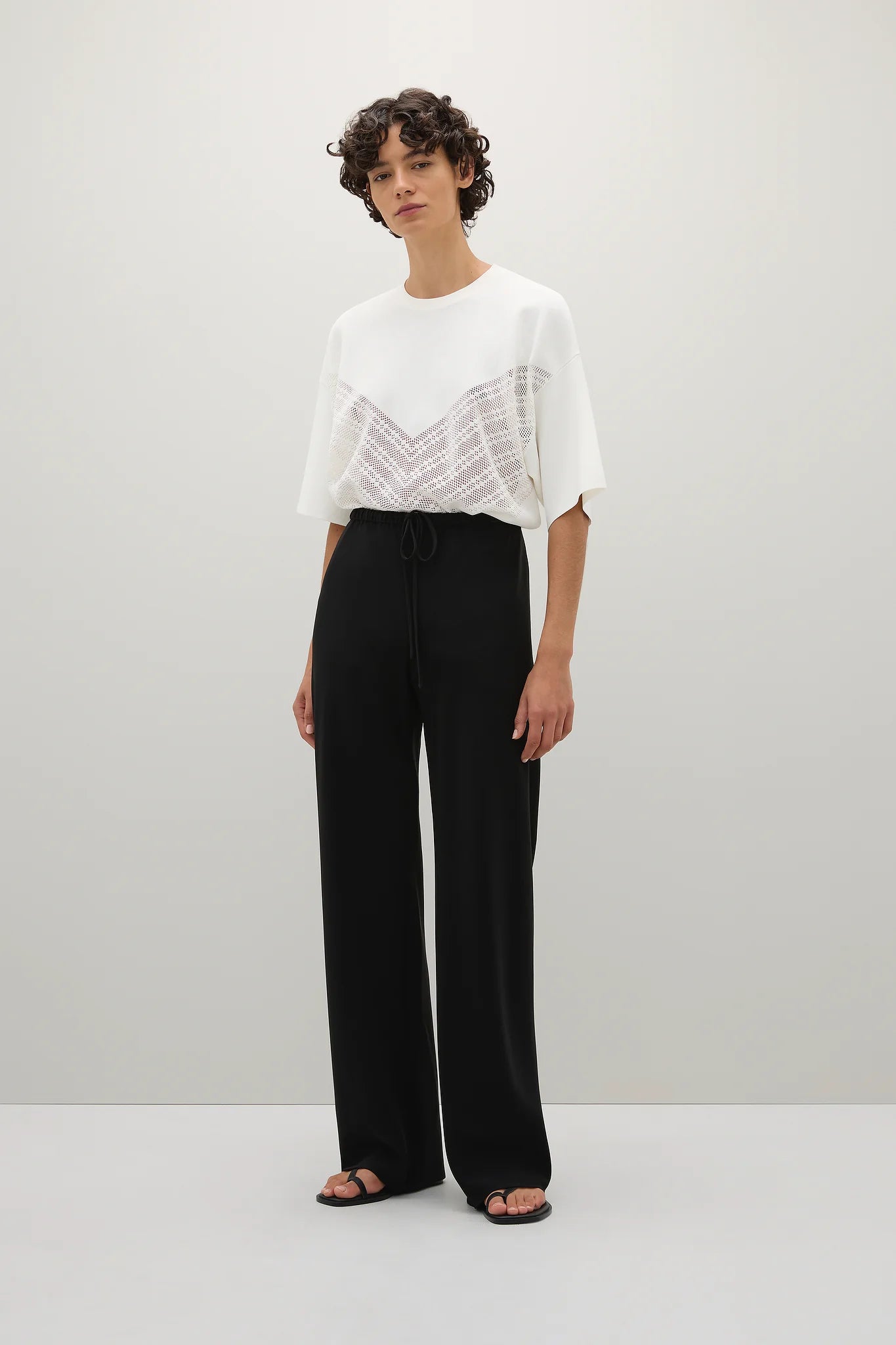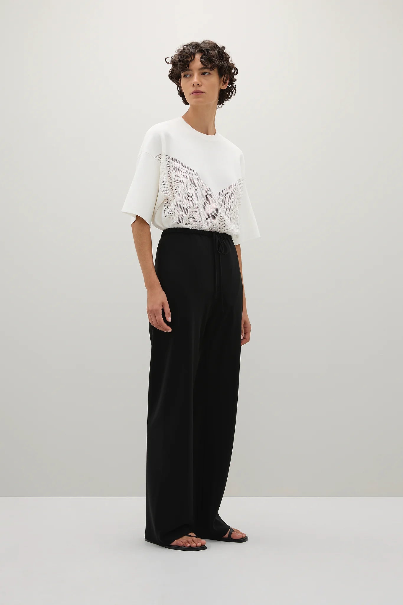 A Emery Estee Bias Pant lW Matte in Black. Crafted from a matte Japanese triacetate, the Estee Bias Pant is cut on the bias to drape effortlessly on the body with a drawstring waist offering comfort and ease of wear.