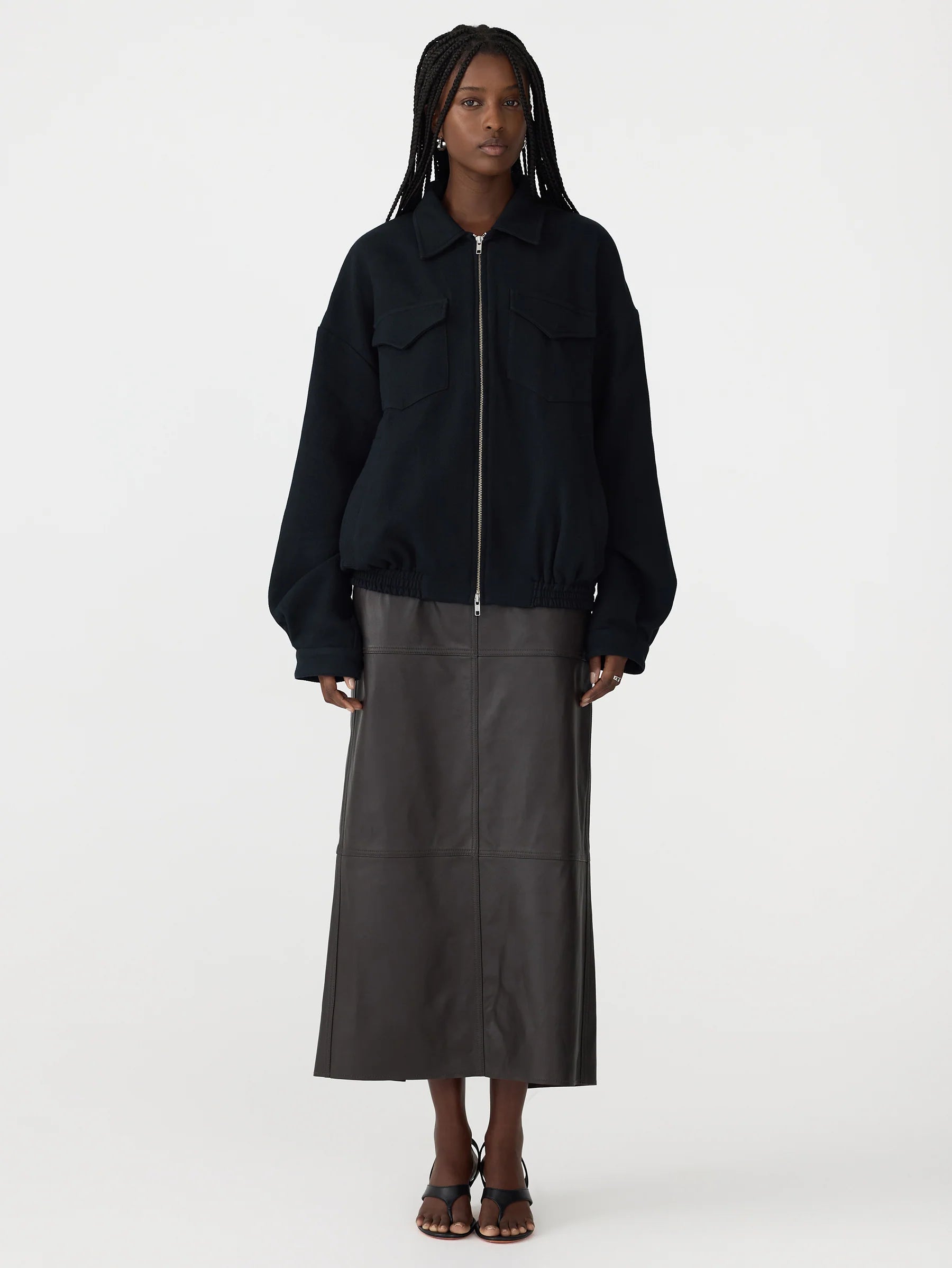 - Centre-front open-ended zipper