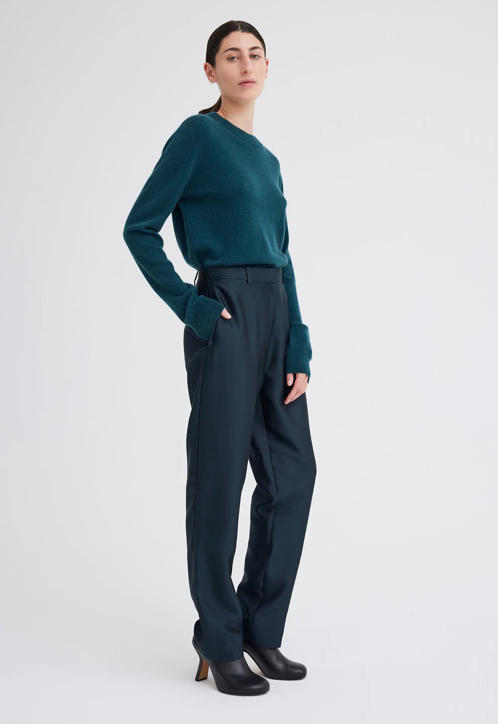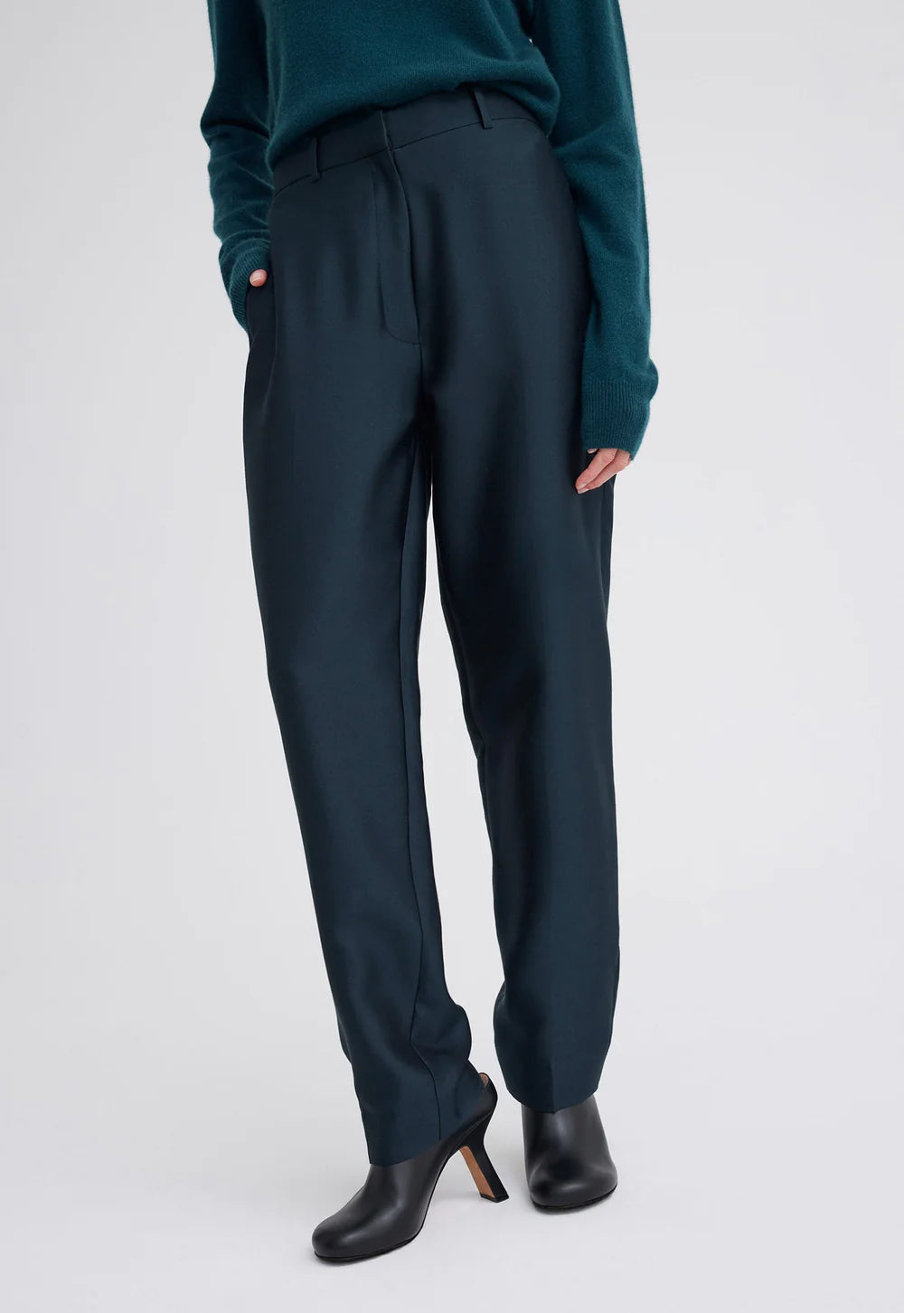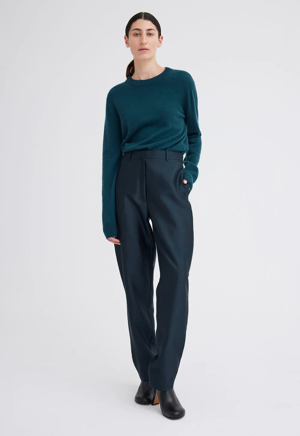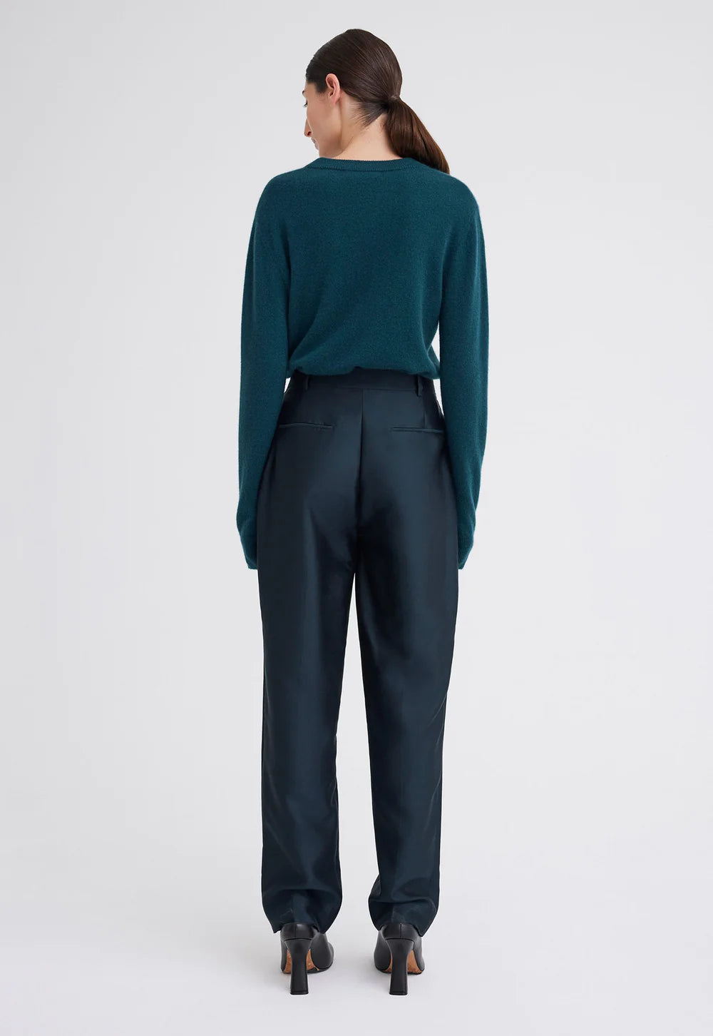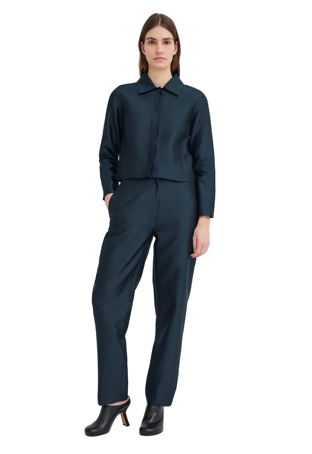 Tailored from a decadent silk wool suiting, these tailored pants are the epitome of modern elegance. With a high waist, side seam pockets and straight cut leg, details have been kept to a minimum to allow the fabrication of the piece to be the true stand out. Style back with coordinating silks for an easy elevated ensemble.