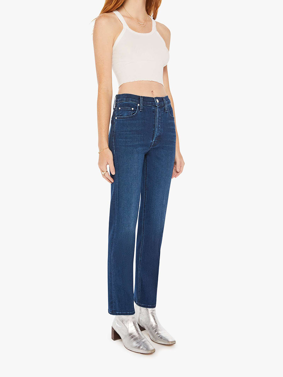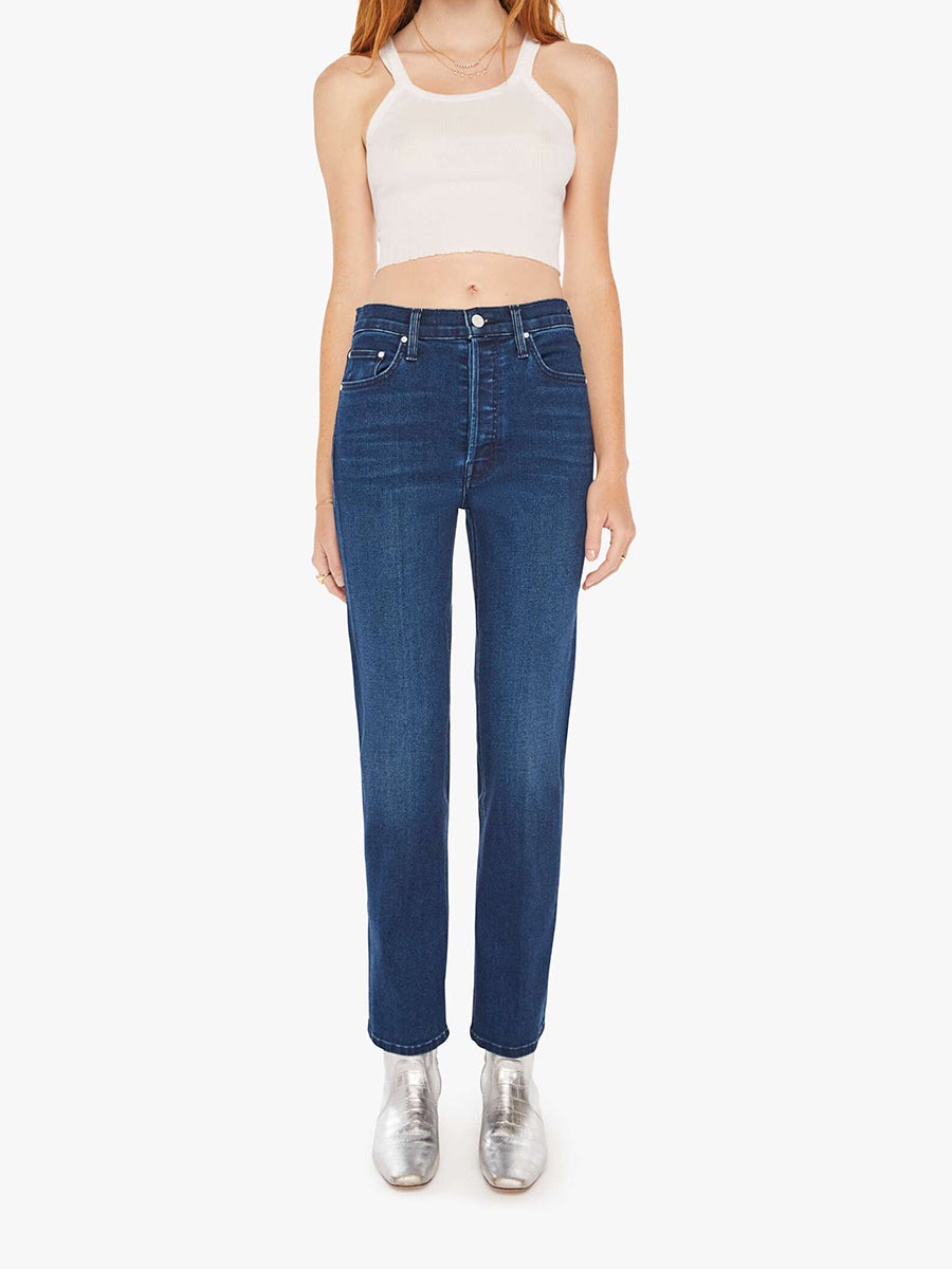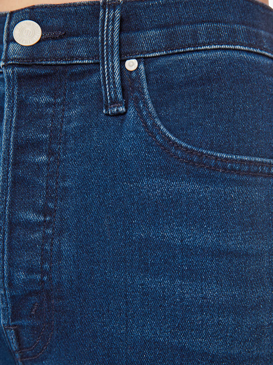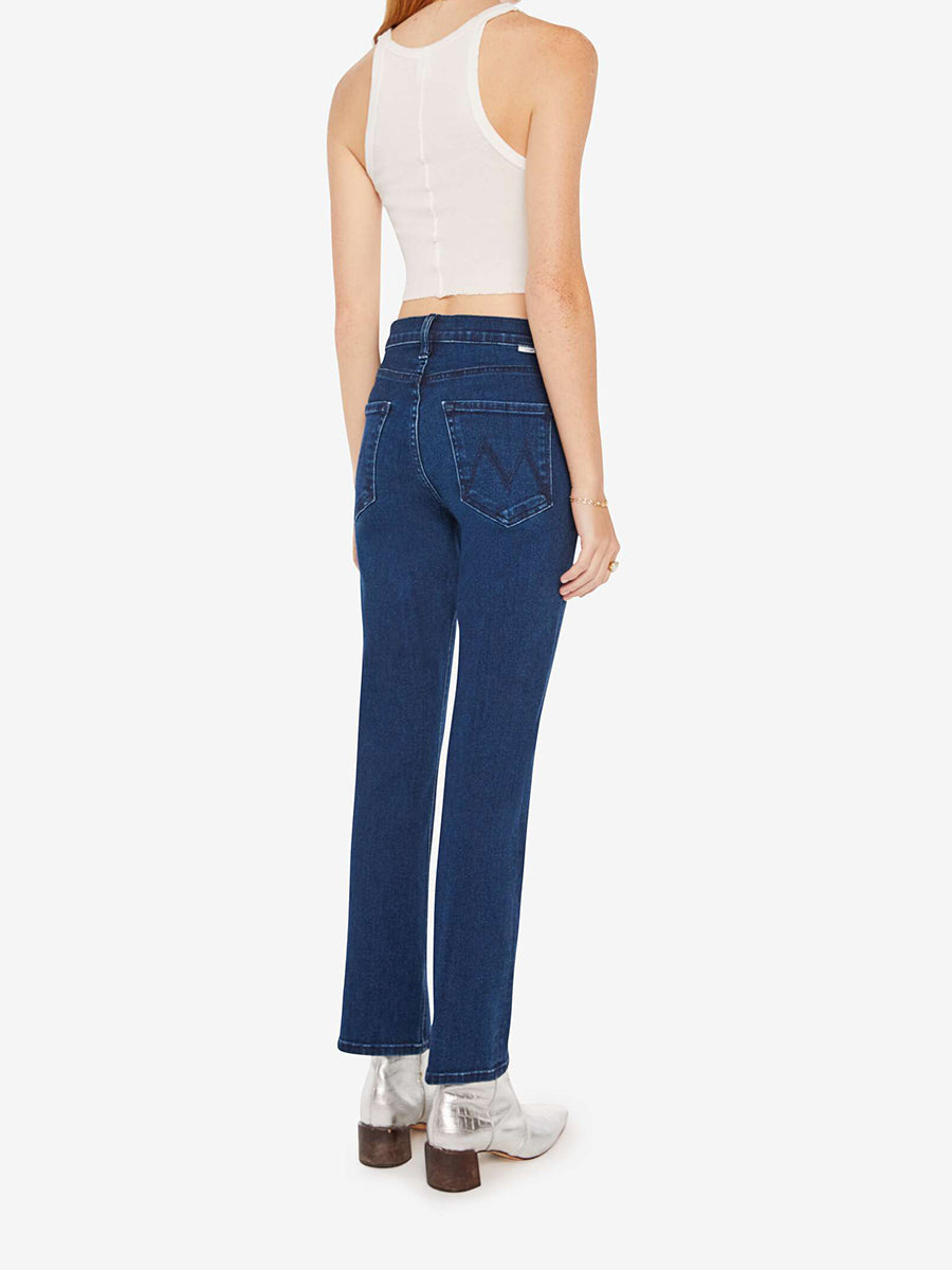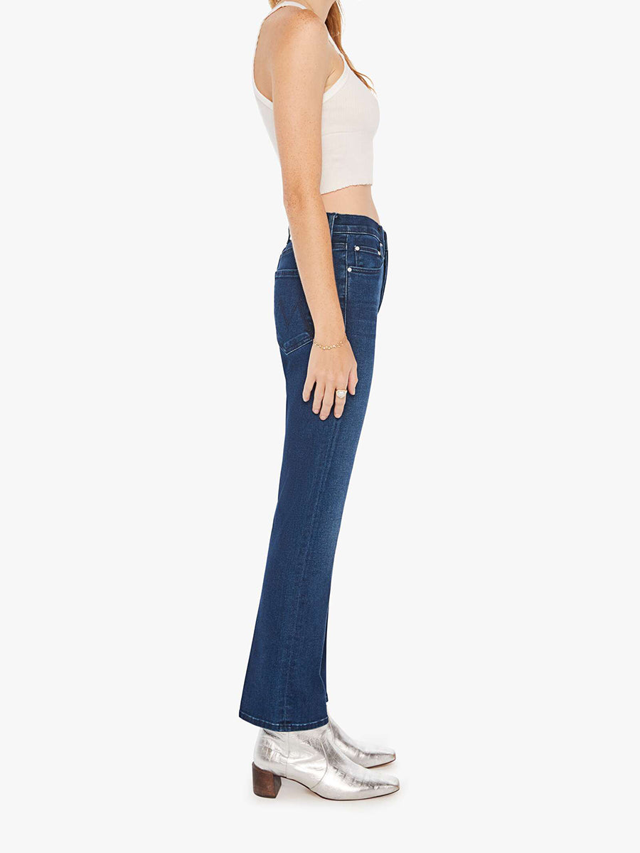 In rare form. A high-rise flare with a button fly and a clean ankle-length hem. Cut from stretch denim, Taking Shape is a dark blue wash with super subtle whiskering and fading.