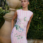 Aston Studio Ariel Dress in Baby Le Fruit Check. Pair the Ariel Dress back with your favourite pair of summer flats or elevate the look by styling it with a pair of strappy heels.